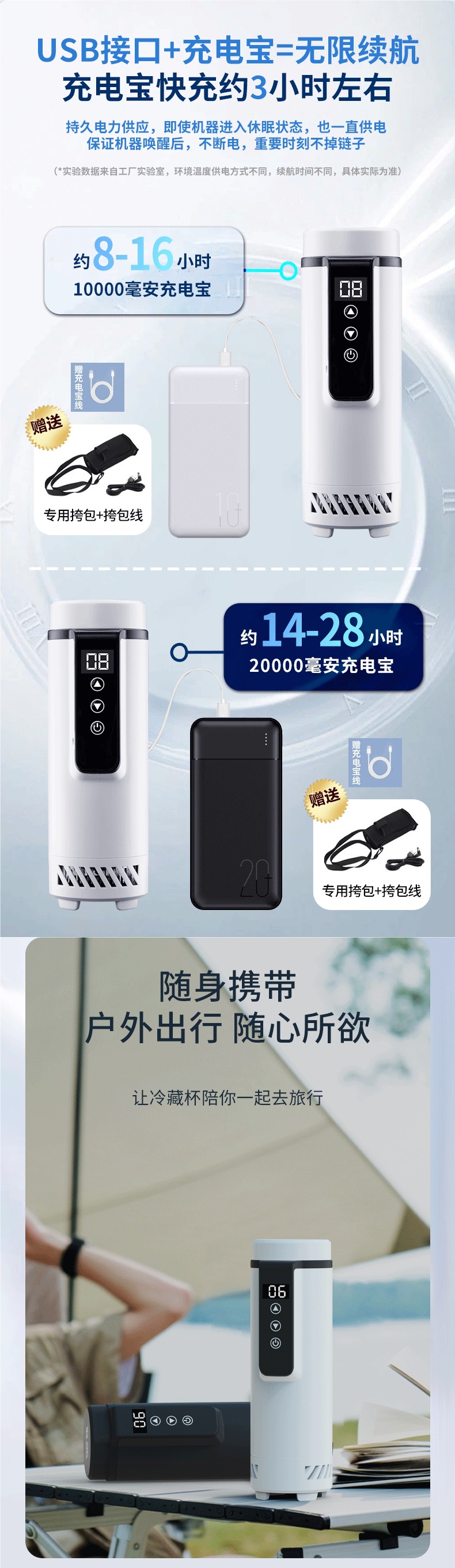 • 일반 옥백색【0-18℃디지털 디스플레이 온도 조절기 + 휴대용 가방 + 20,000 보조 배터리] 배터리 수명 약 14~28시간