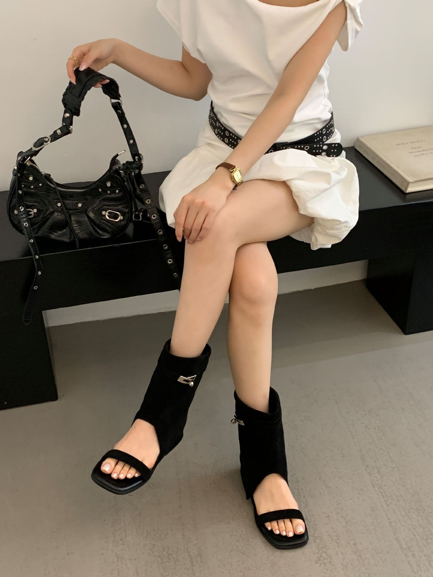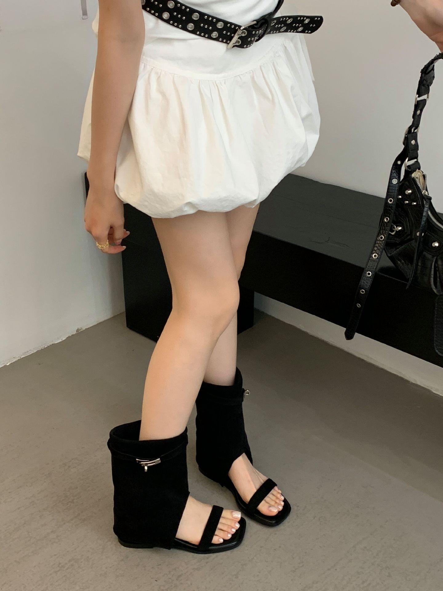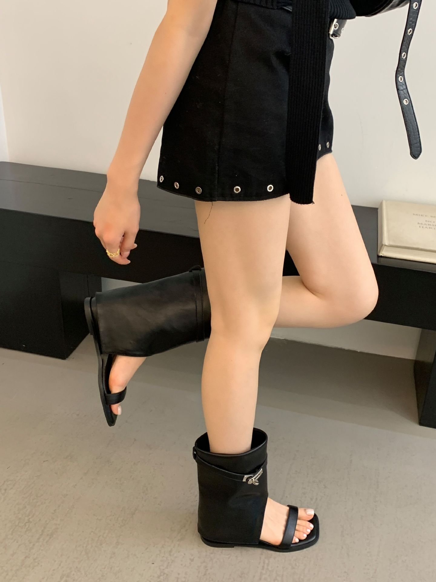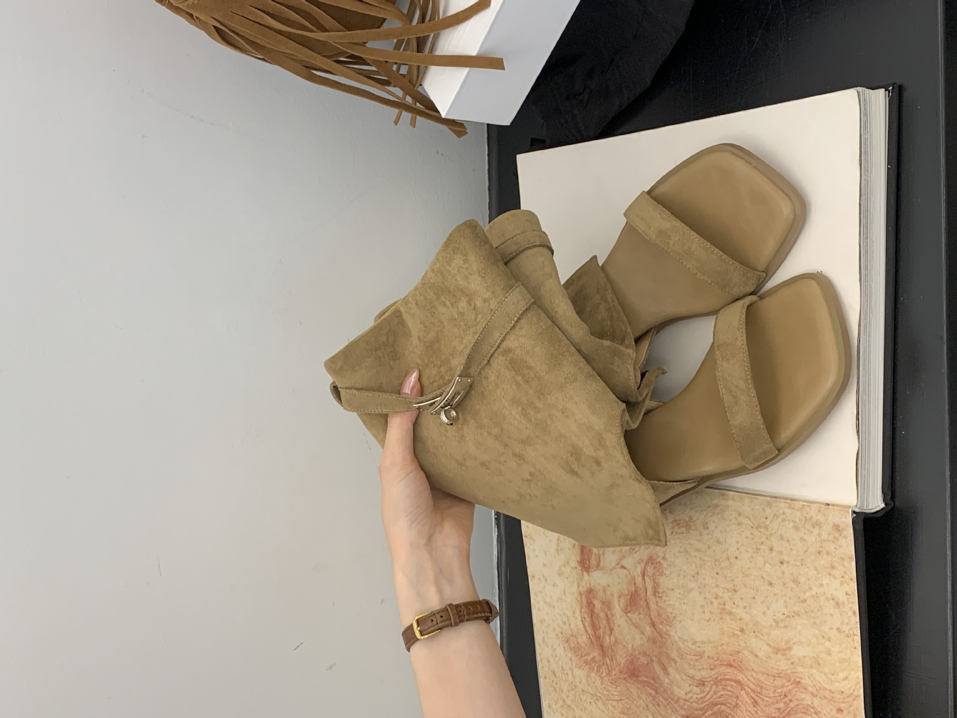 2025 봄 여름 새로운 패션 다목적 복고풍 정품 가죽 높이 증가 내부 높이 증가 플립 플롭 바지 부츠 샌들 여성