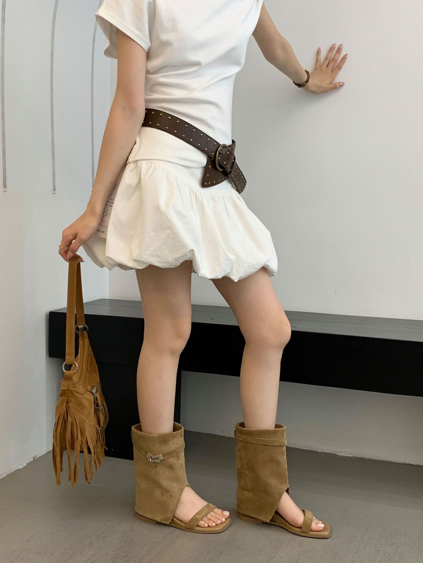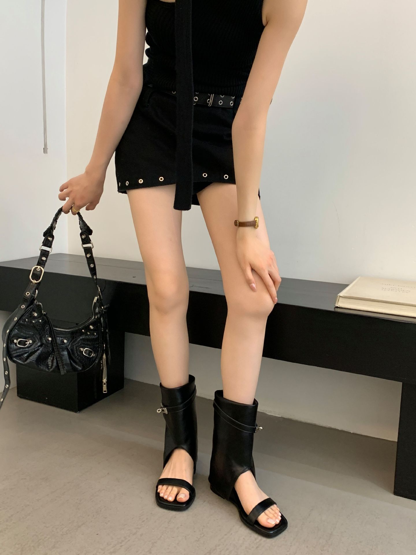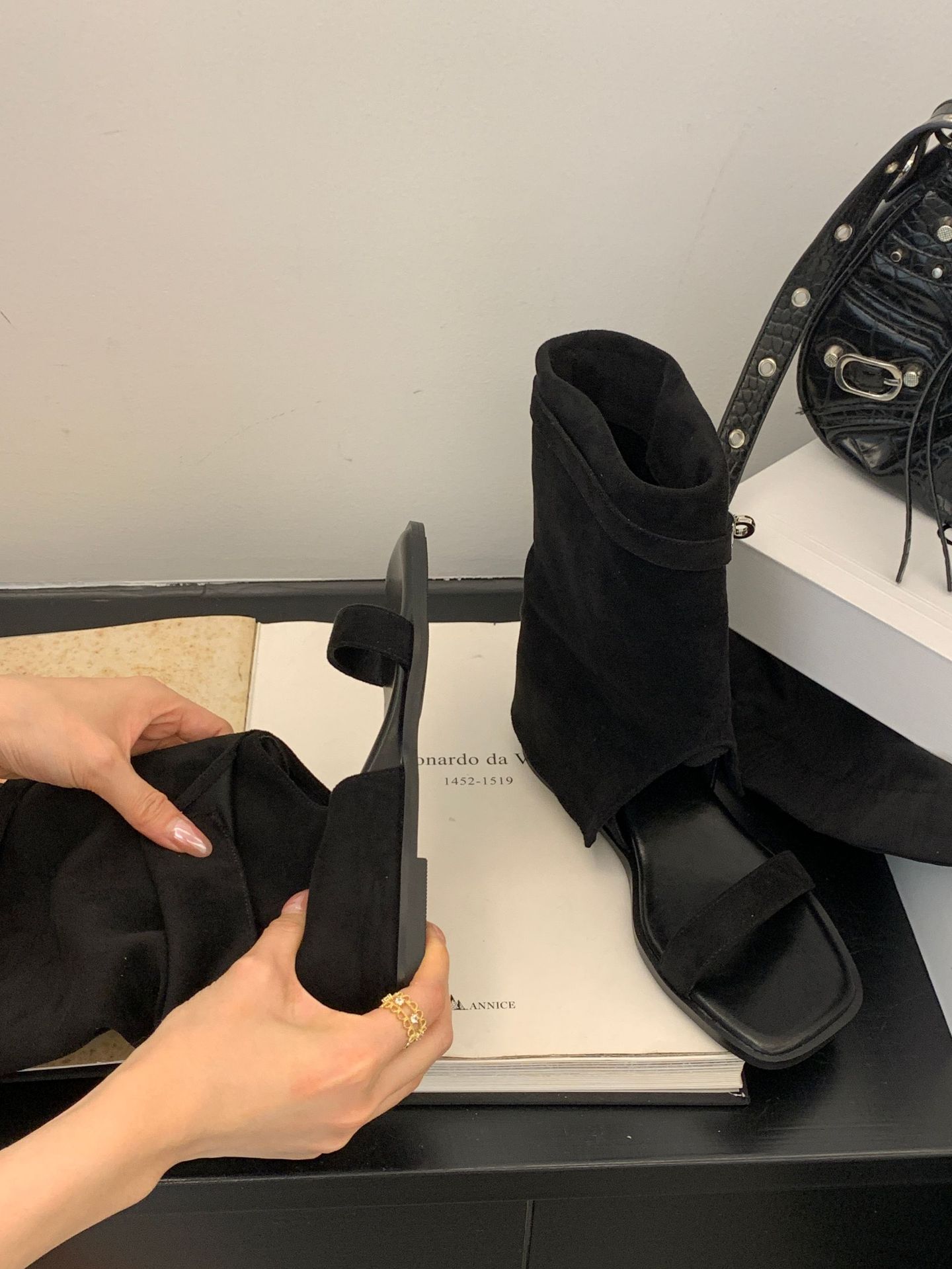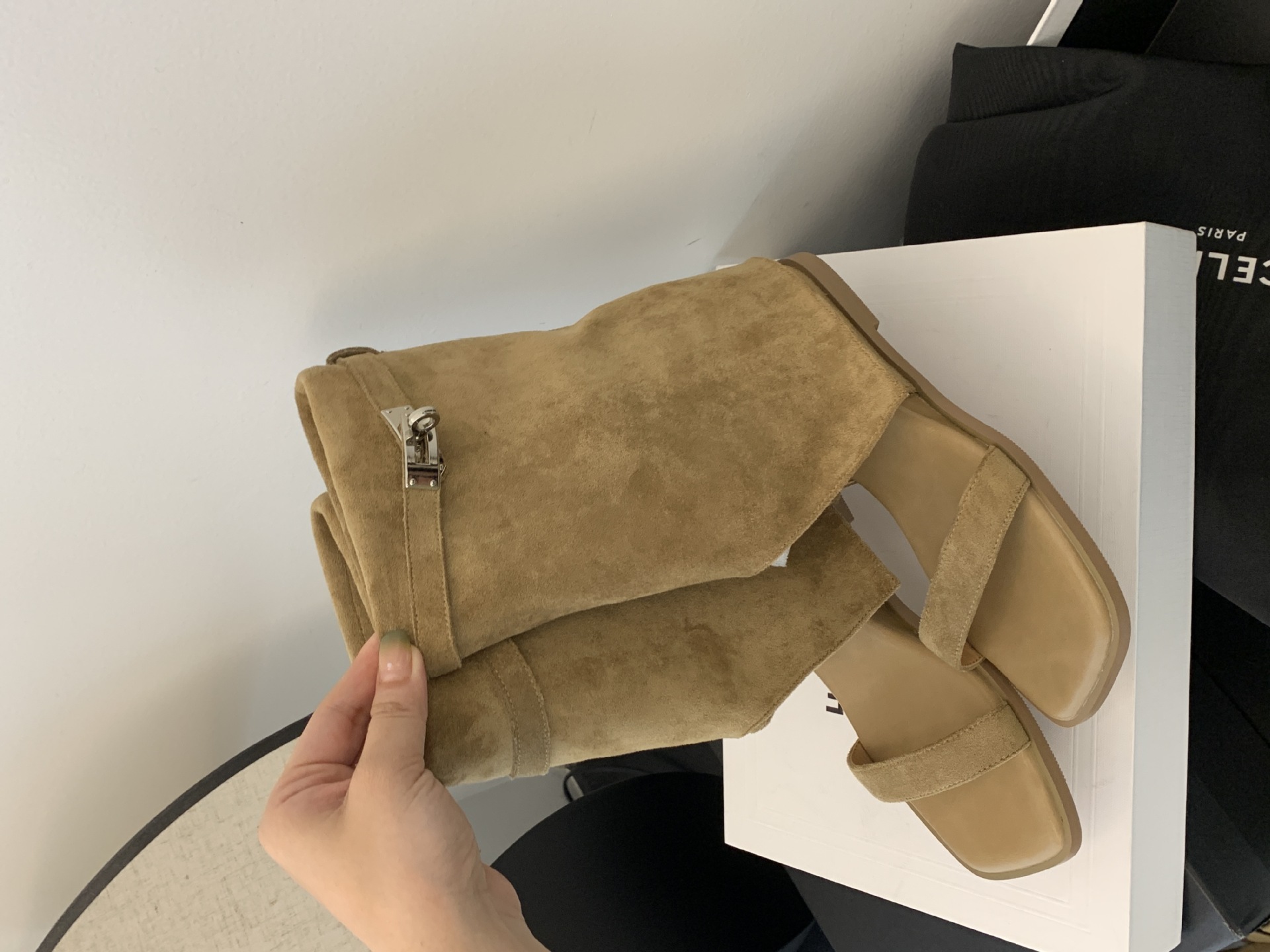 2025 봄 여름 새로운 패션 다목적 복고풍 정품 가죽 높이 증가 내부 높이 증가 플립 플롭 바지 부츠 샌들 여성