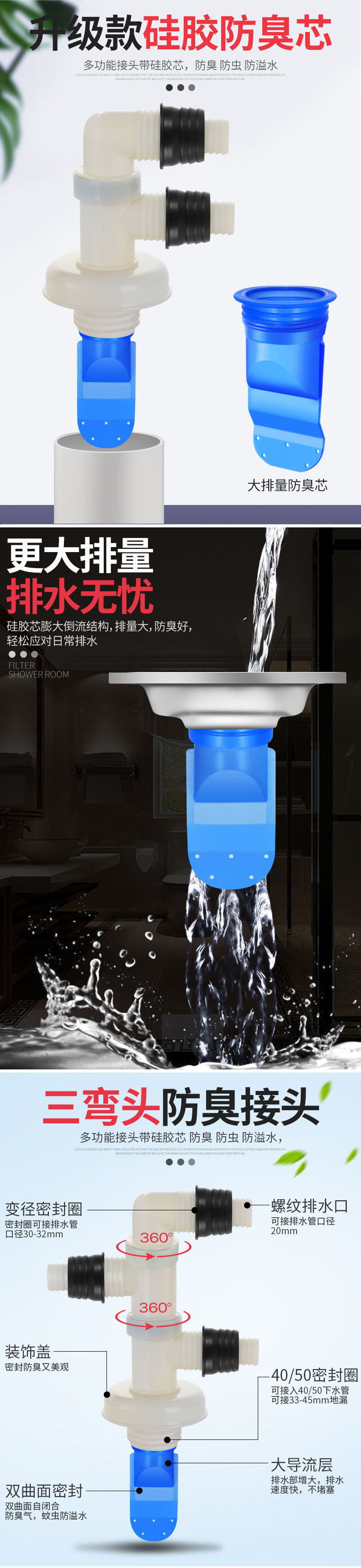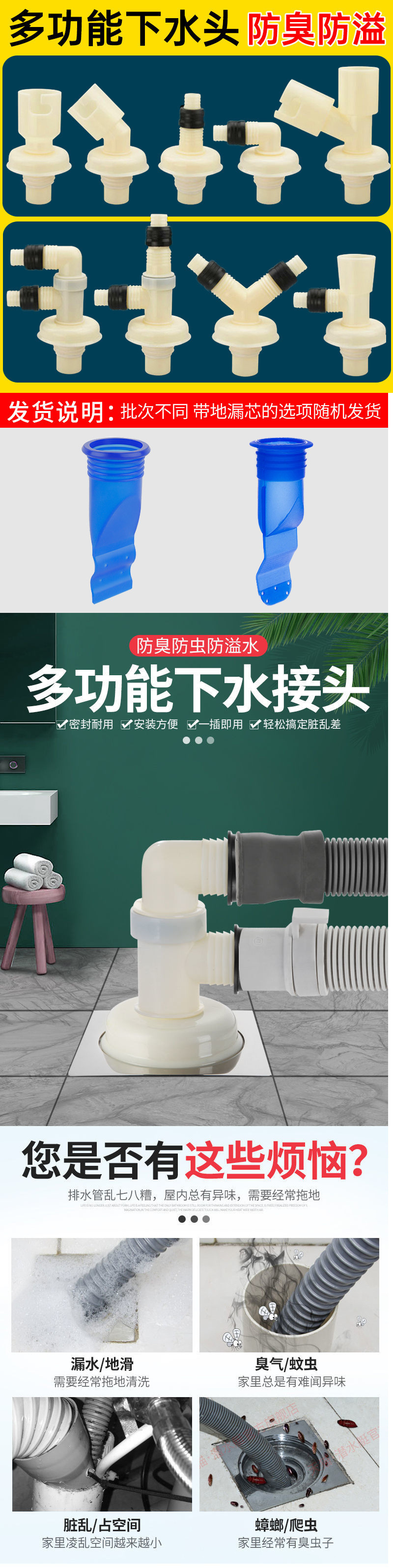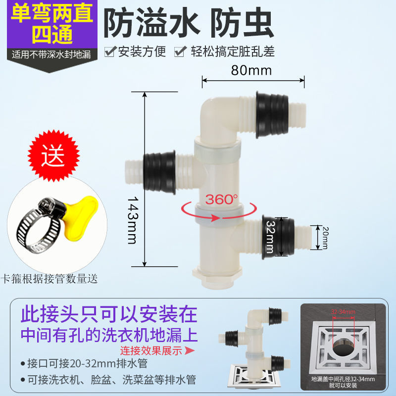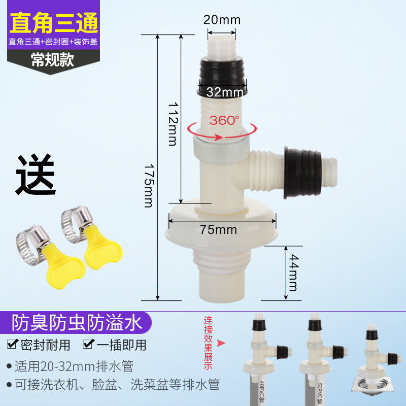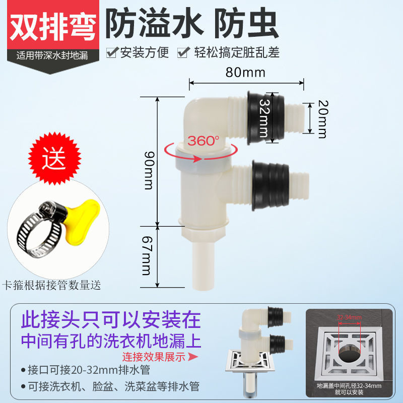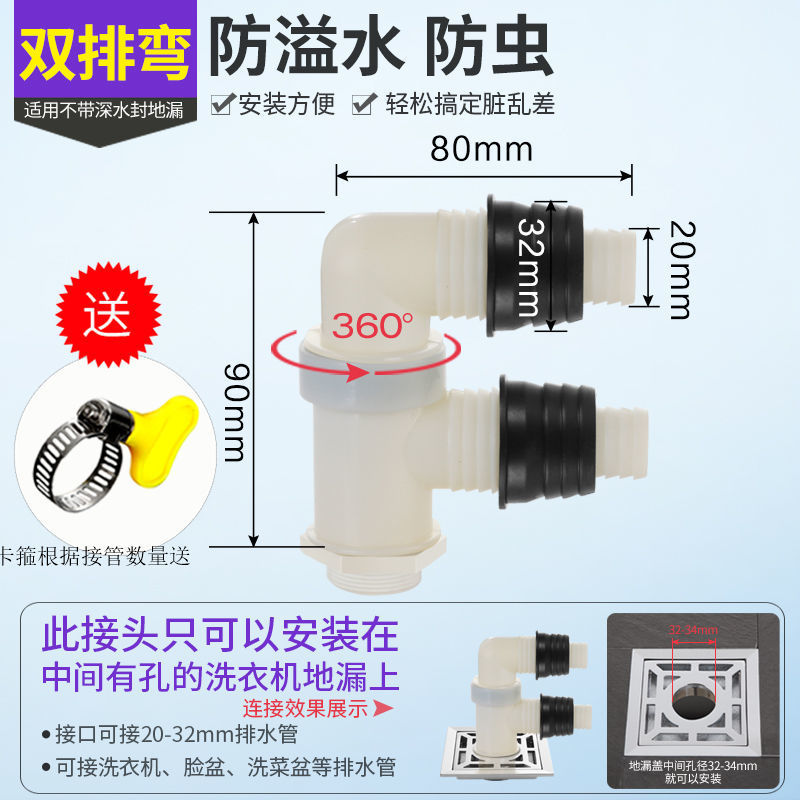 양용 누수방지 및 냄새방지 유물, 3구 하수관, 투인원 세탁기 배수관, 바닥 배수구 특수 커넥터스토어 가기