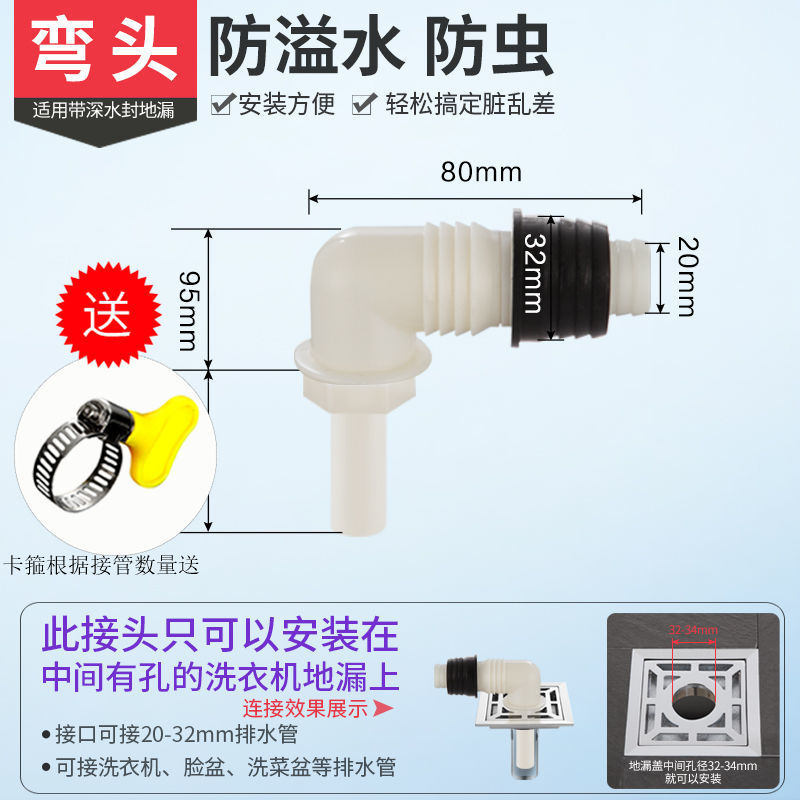 • [세탁기 바닥 배수구] + 심수 조인트 - 고무 슬리브 엘보에 적합