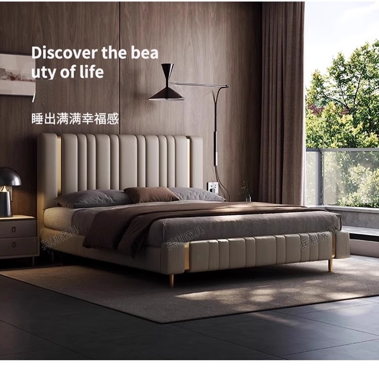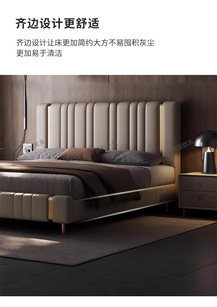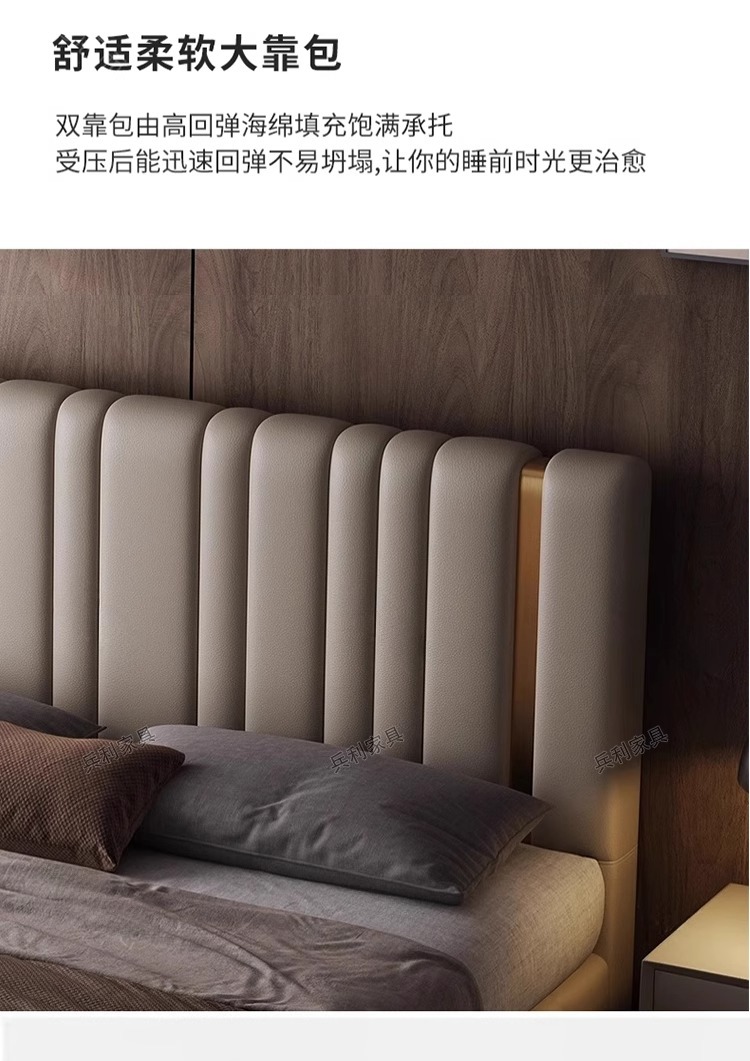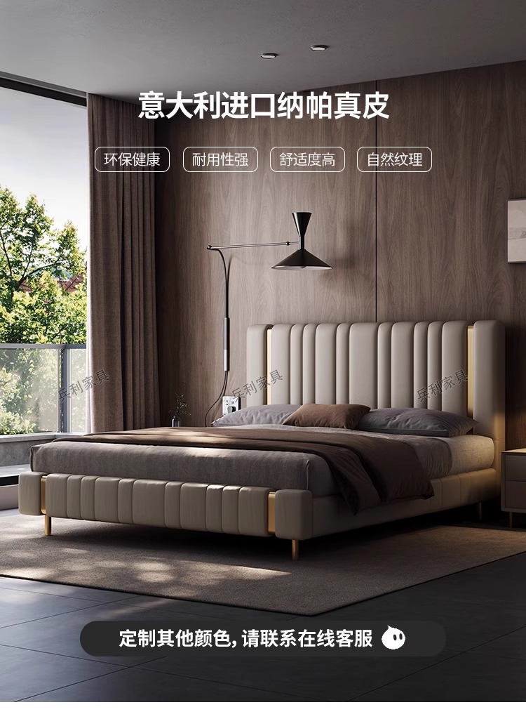 이탈리안 라이트 럭셔리 가죽 침대 럭셔리 마스터 침실 더블 침대 2025 뉴 빌라 3 서랍 수납 소프트 백 웨딩 침대스토어 가기