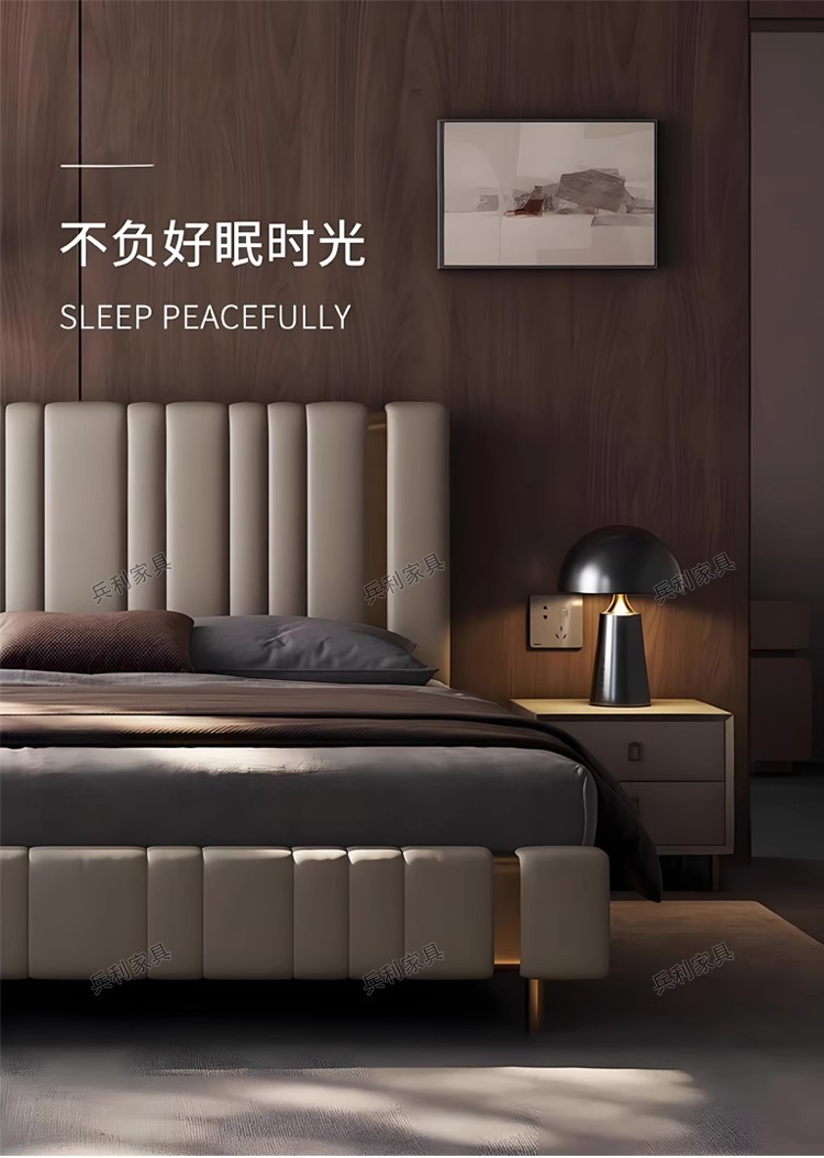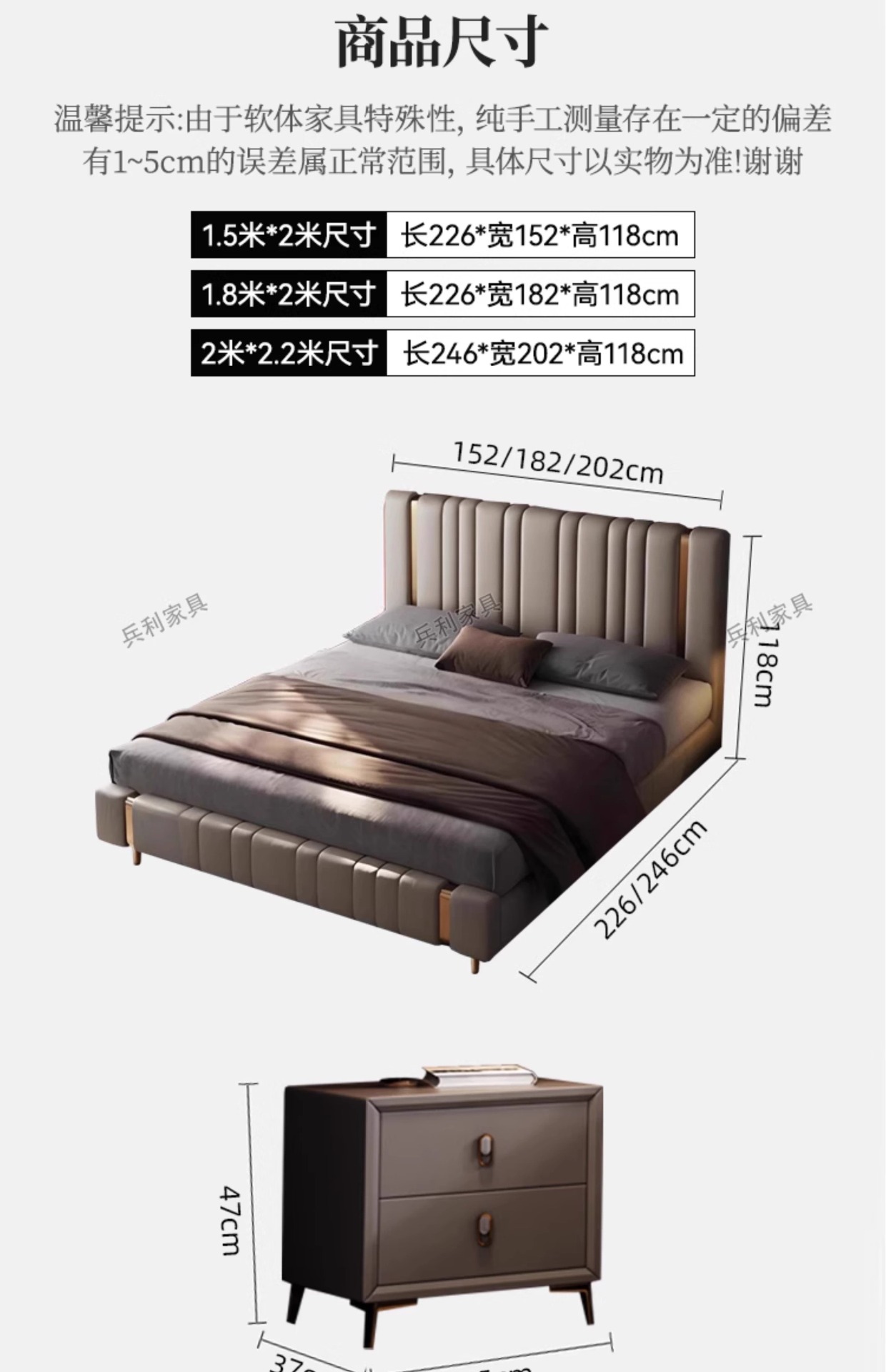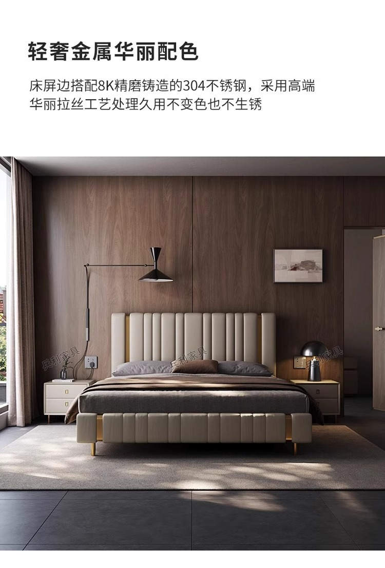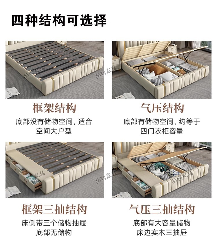 이탈리안 라이트 럭셔리 가죽 침대 럭셔리 마스터 침실 더블 침대 2025 뉴 빌라 3 서랍 수납 소프트 백 웨딩 침대스토어 가기