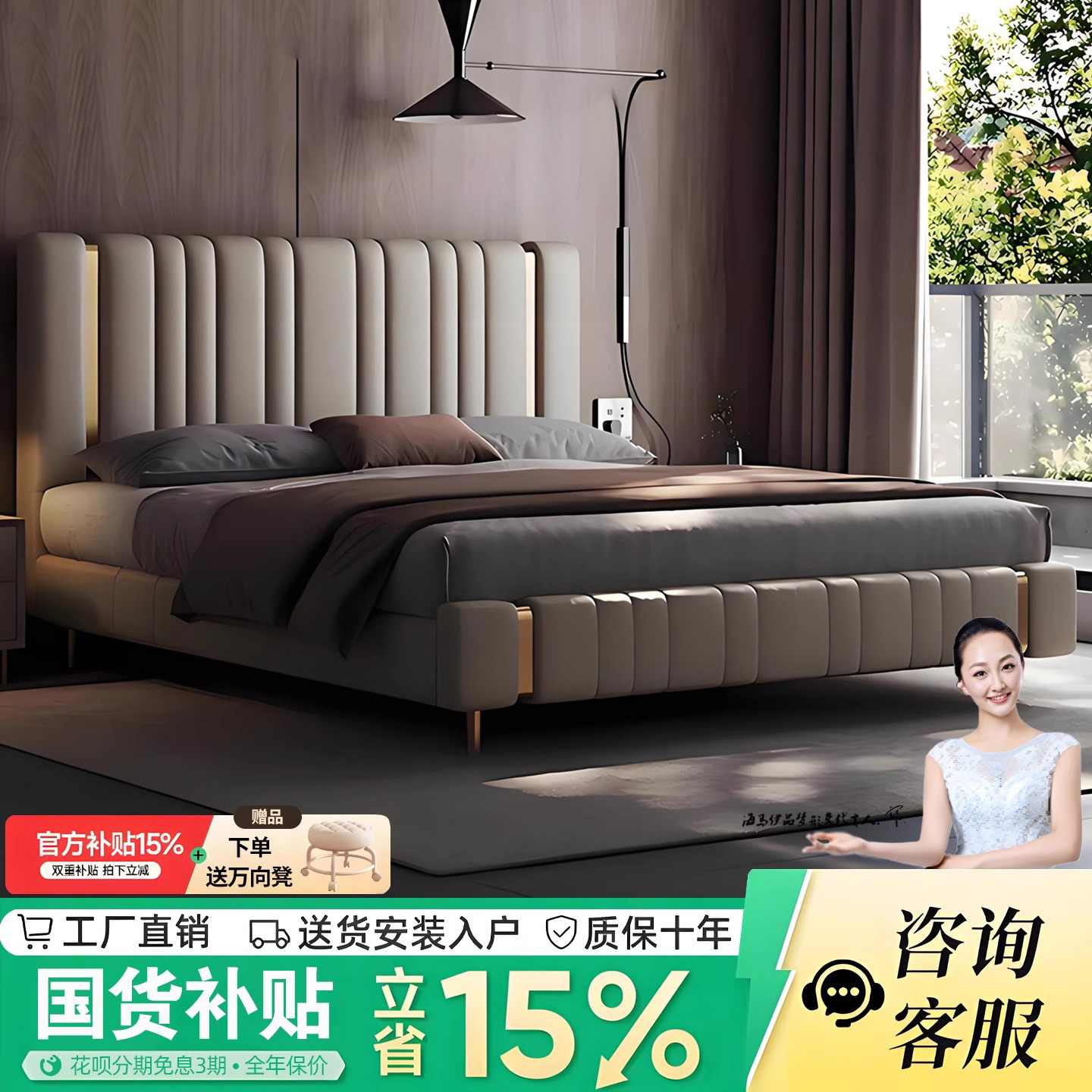 이탈리안 라이트 럭셔리 가죽 침대 럭셔리 마스터 침실 더블 침대 2025 뉴 빌라 3 서랍 수납 소프트 백 웨딩 침대