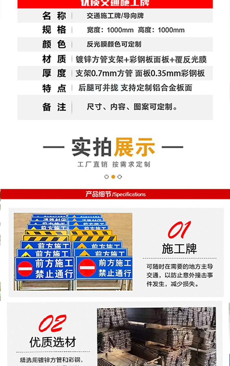 맞춤형 도로 공사 경고판, 접이식 반사판, 안전 표지판, 교통 표지판스토어 가기