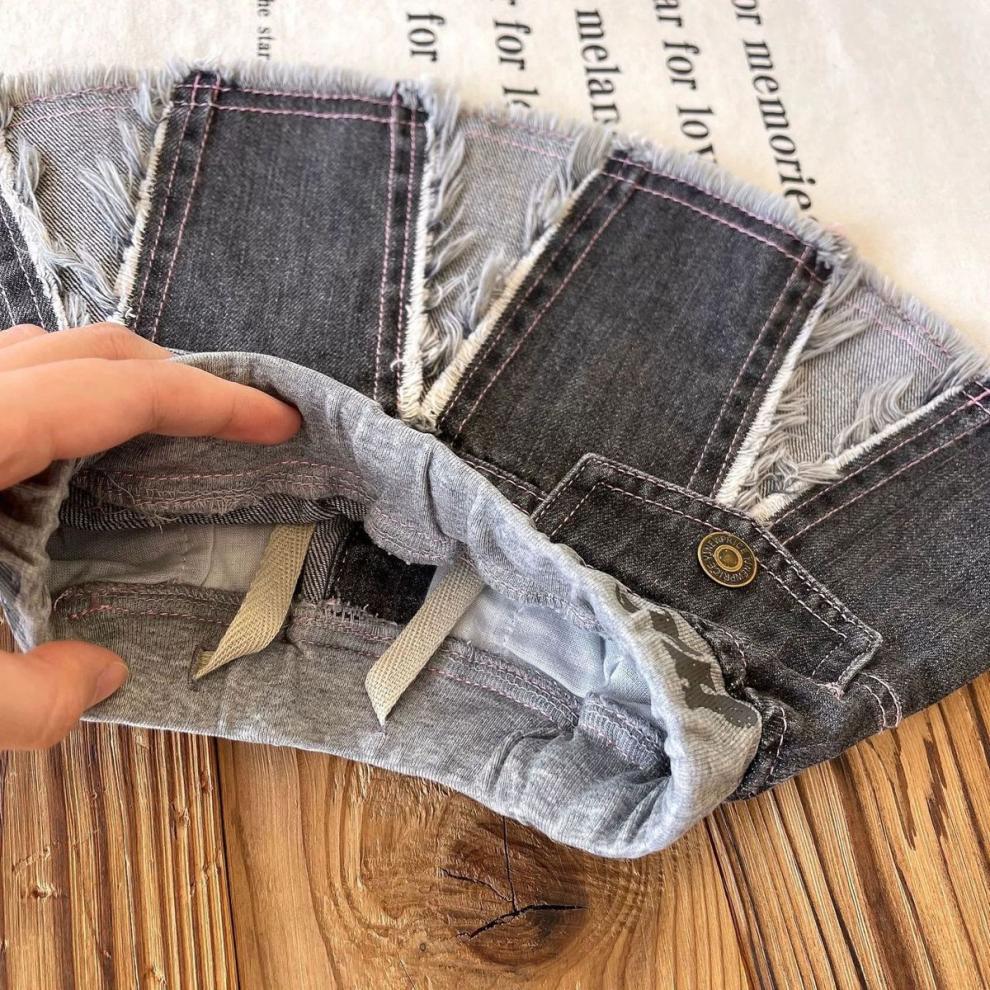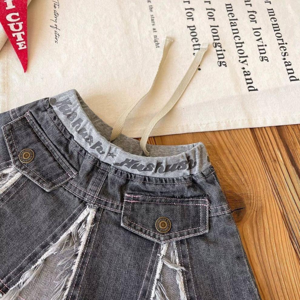 일본 아동복 중고 아동 스플라이스 데님 스커트 영어 프린트 벨트 플리츠 스커트