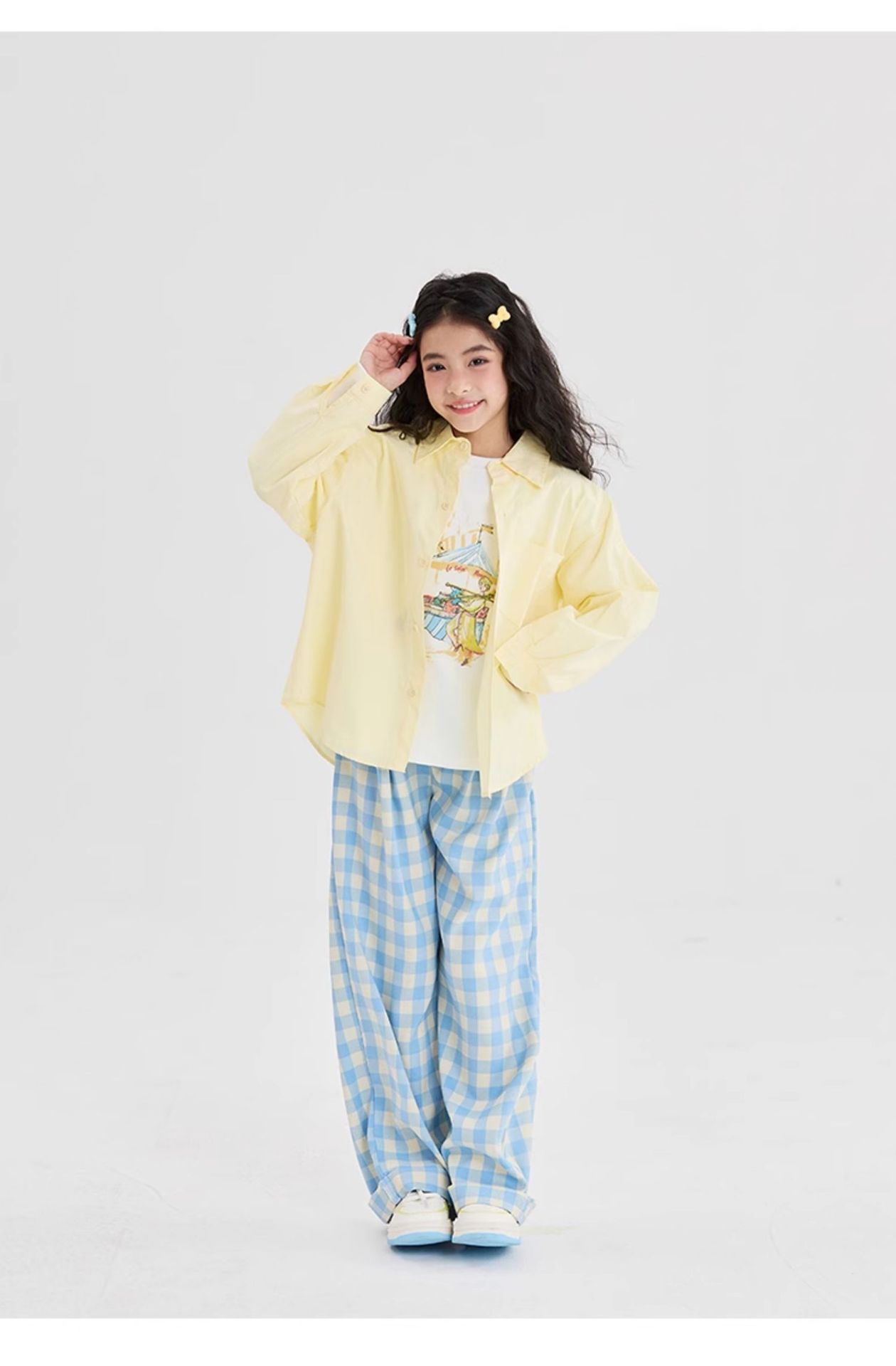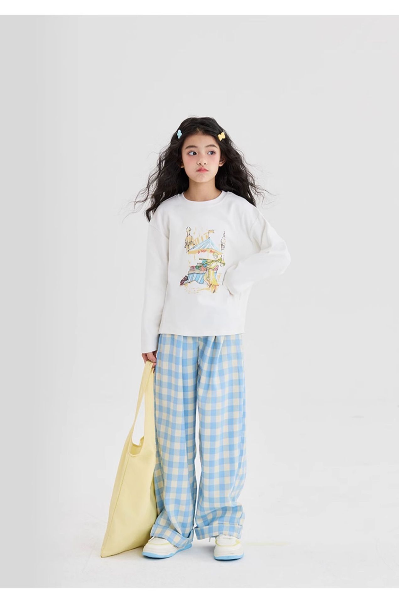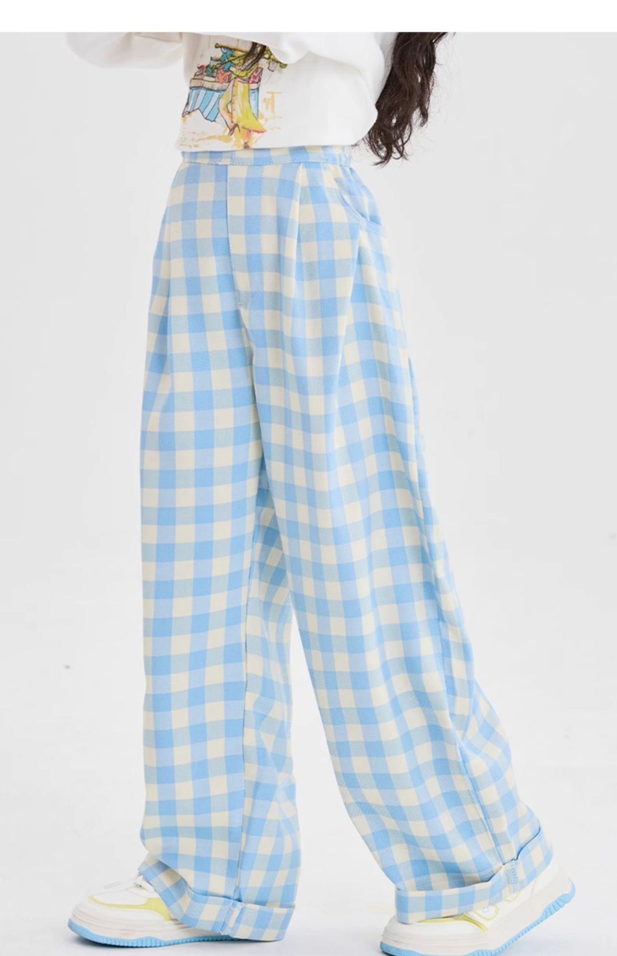 여아 격자 무늬 와이드 팬츠 여름 얇은 2025 새로운 아동용 루즈 캐주얼 스트레이트 팬츠 여름 의류스토어 가기