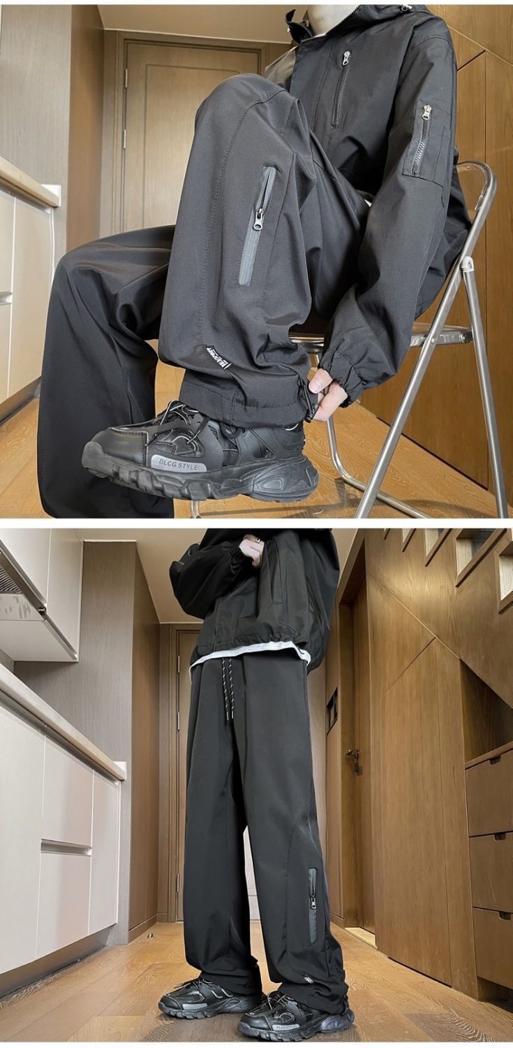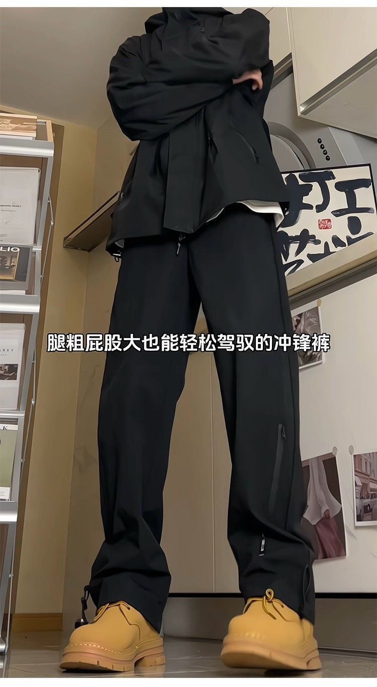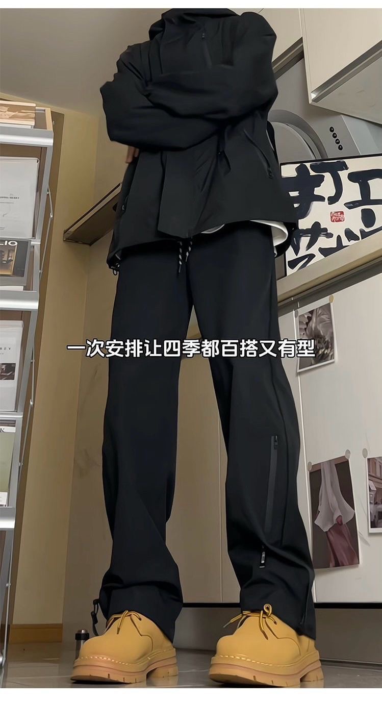 남성용 방수 아웃도어 팬츠, 봄 트렌디 브랜드 하이 스트리트 바이브 소프트 쉘 팬츠, 아메리칸 기능성 스타일 루즈 블랙 스트레이트 팬츠