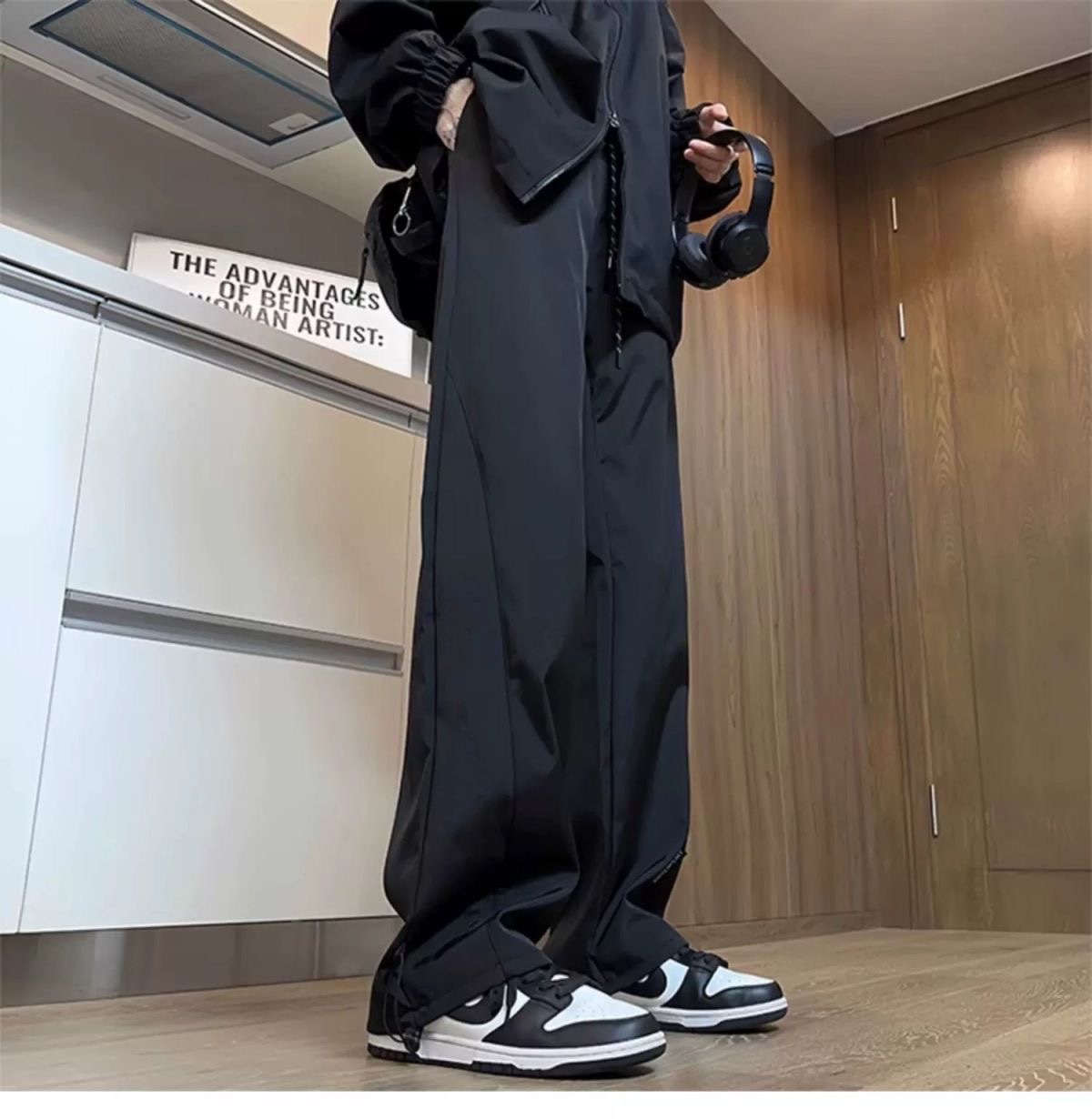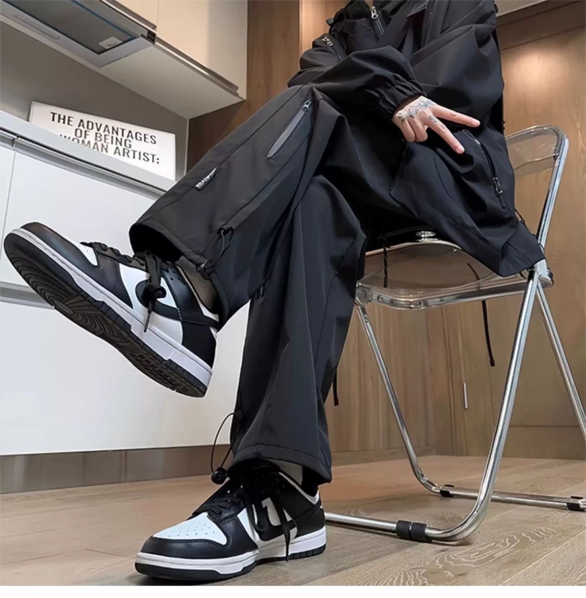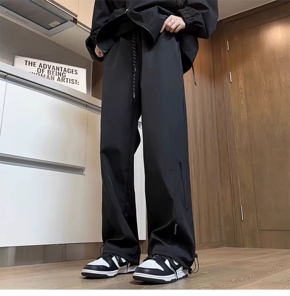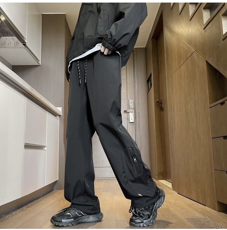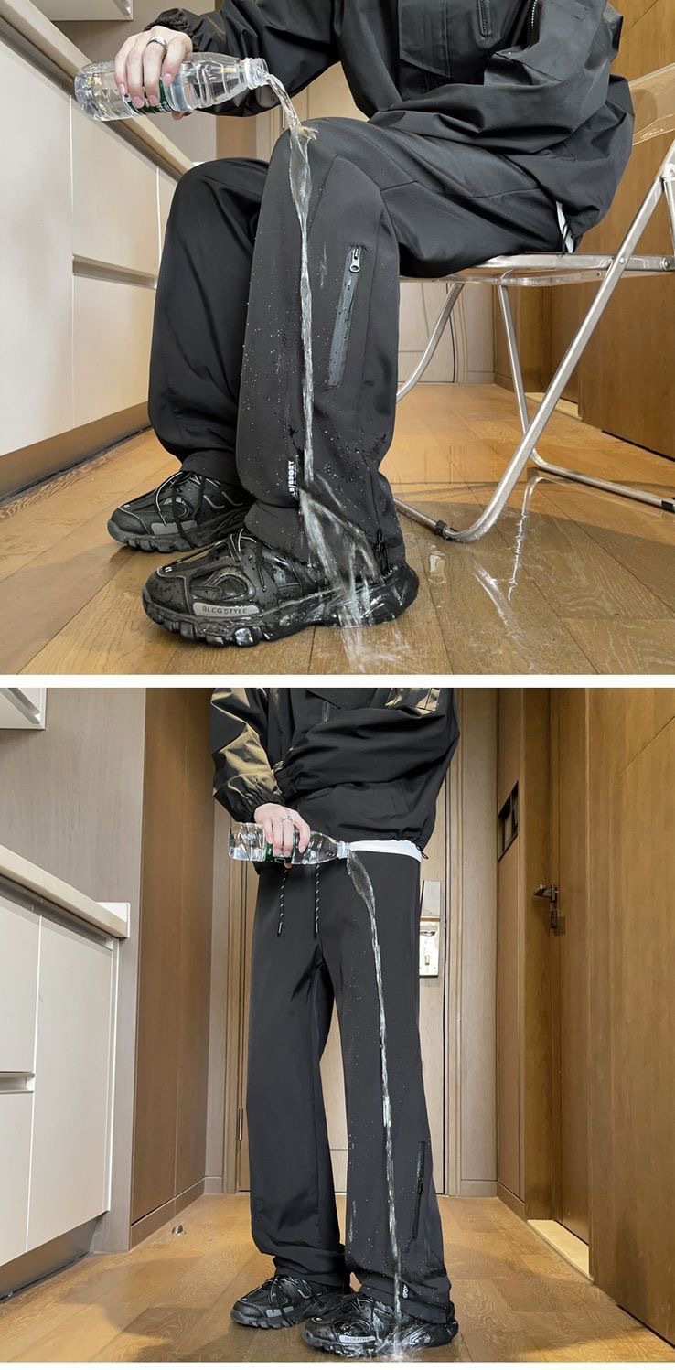 남성용 방수 아웃도어 팬츠, 봄 트렌디 브랜드 하이 스트리트 바이브 소프트 쉘 팬츠, 아메리칸 기능성 스타일 루즈 블랙 스트레이트 팬츠스토어 가기
