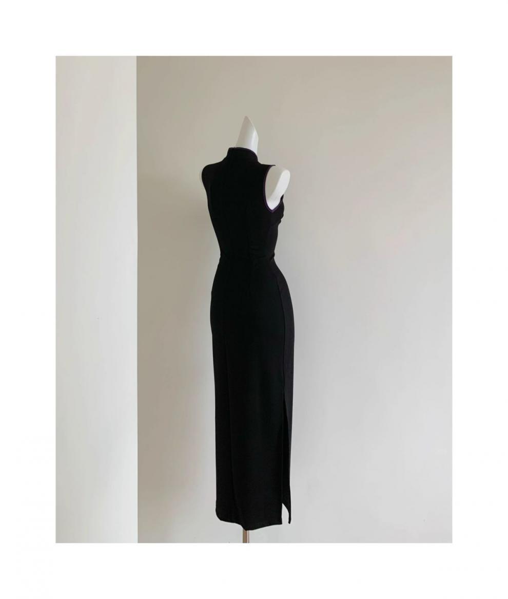 동양의 미학 중국 스타일 보라색 자수 복고풍 검은 색 슬림 피트 홍콩 스타일 치파오 드레스스토어 가기