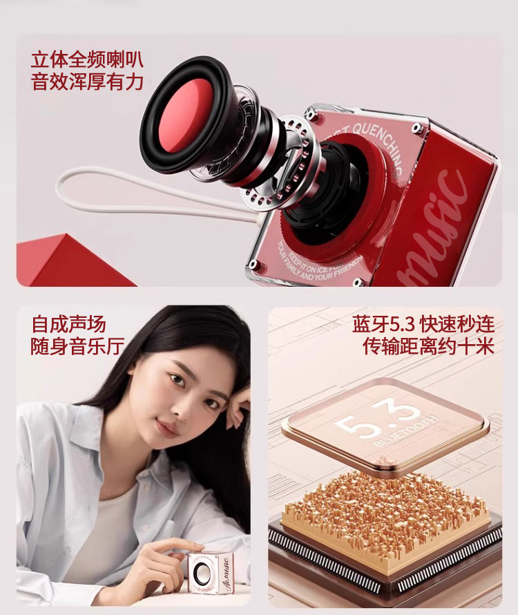블루투스 스피커, 소형 오디오, 소형 서브우퍼, 충격적인 음질, 미니 무선 홈 실외 소형 사각형 오디오