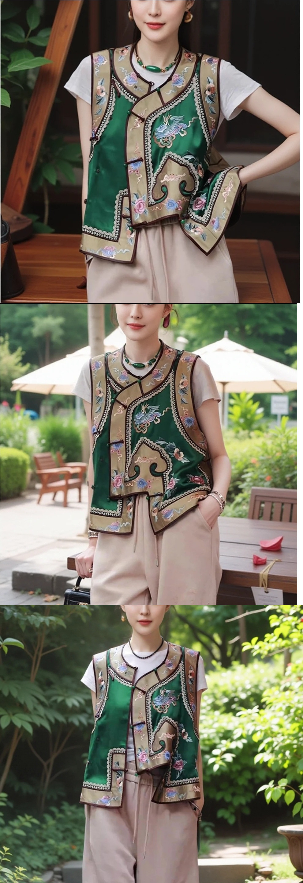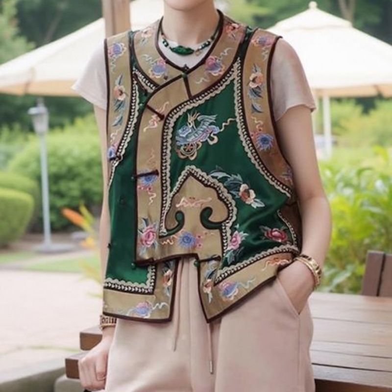 • 새로운 중국 스타일의 짙은 녹색 프린트 조끼