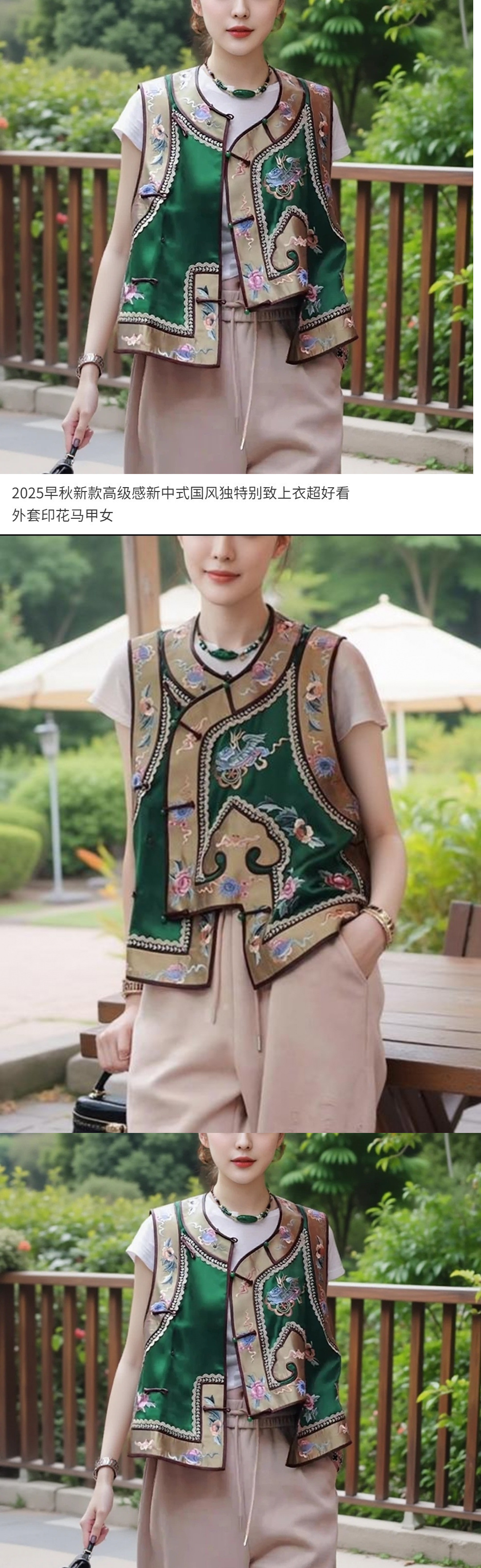 2025 초가을 새로운 고급 새로운 중국 스타일 독특하고 독특한 탑 슈퍼 멋진 자켓 프린트 조끼 여성스토어 가기