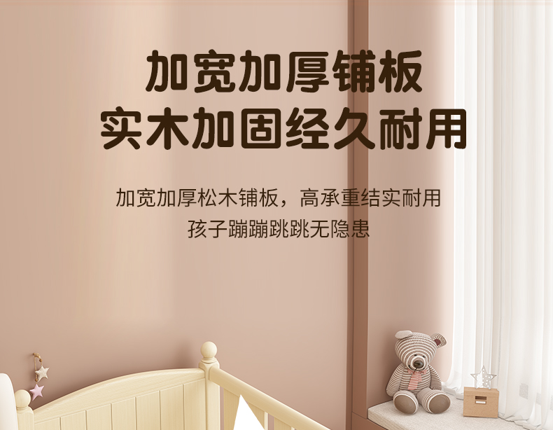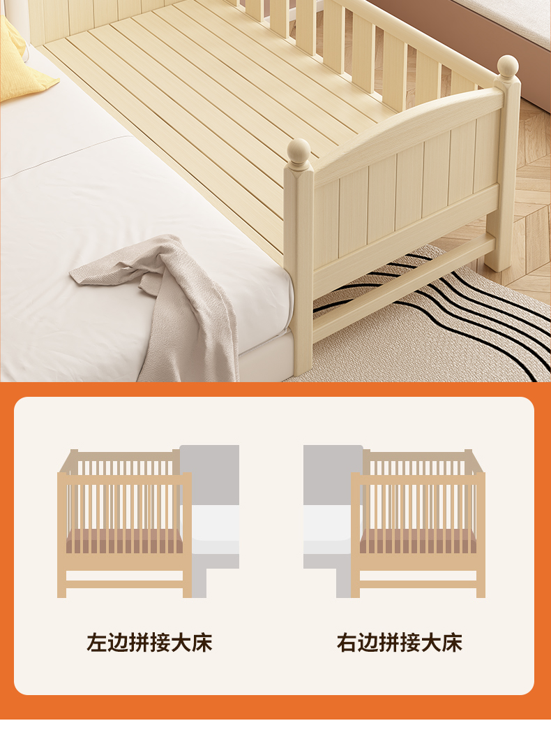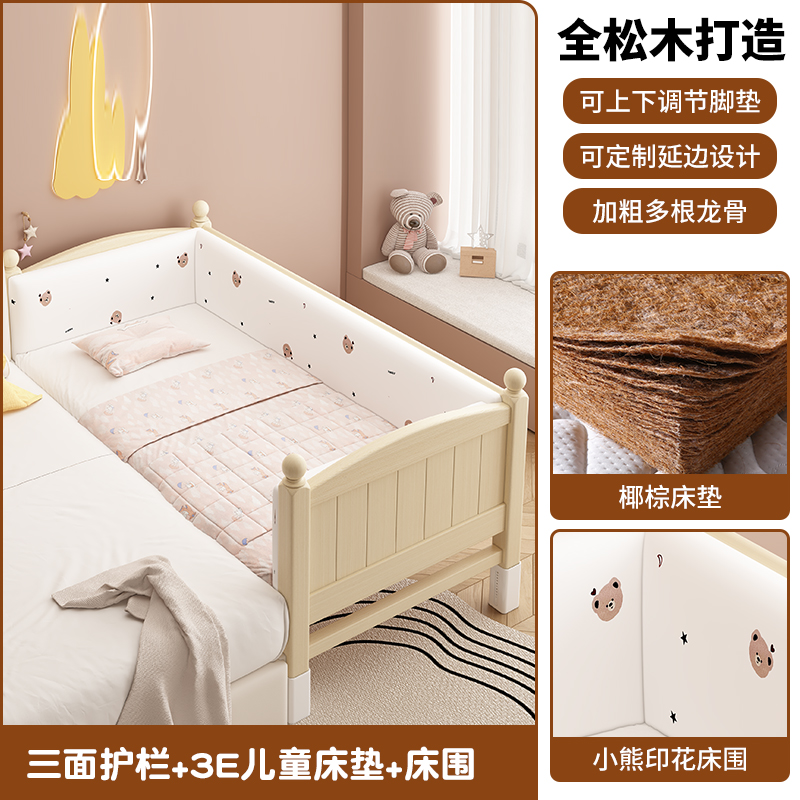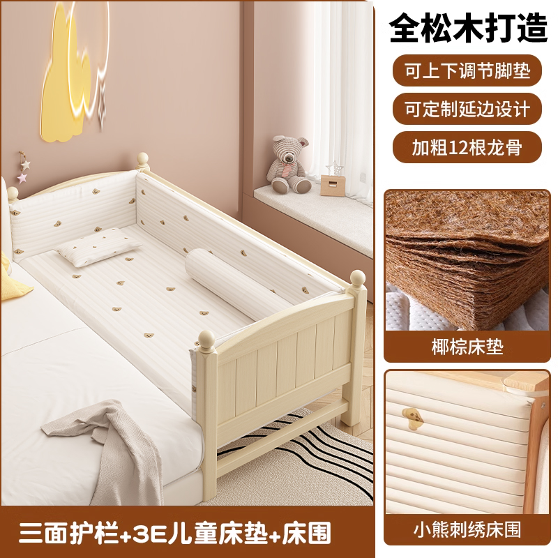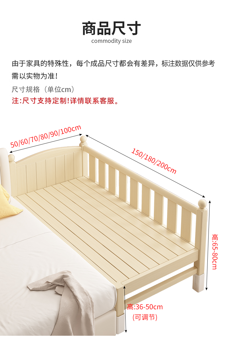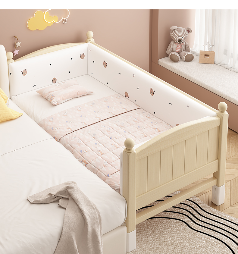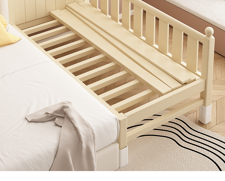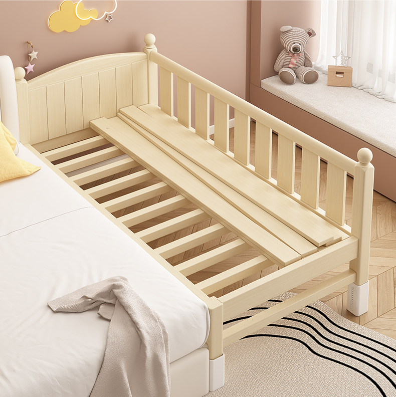어린이 침대 접합 침대 높이 조절 가능 접합 대형 침대 확장 침대 가드 레일이있는 단단한 나무 유아용 침대