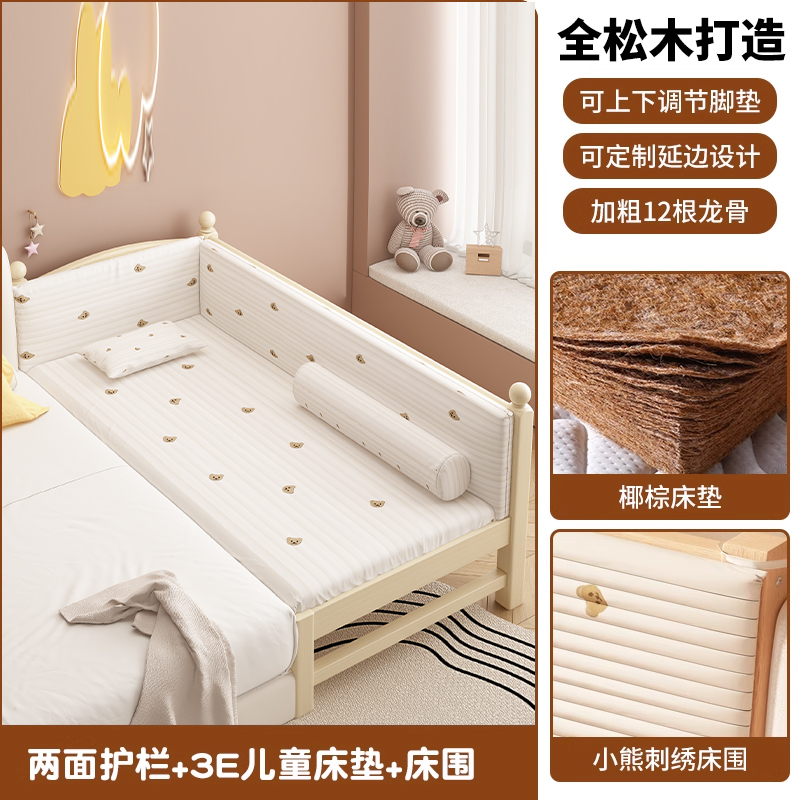 어린이 침대 접합 침대 높이 조절 가능 접합 대형 침대 확장 침대 가드 레일이있는 단단한 나무 유아용 침대스토어 가기