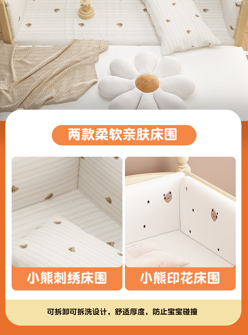 • [침대다리 16단계 조절 가능] 삼면 가드레일 + 매트리스 + 곰자수 침대 옆면