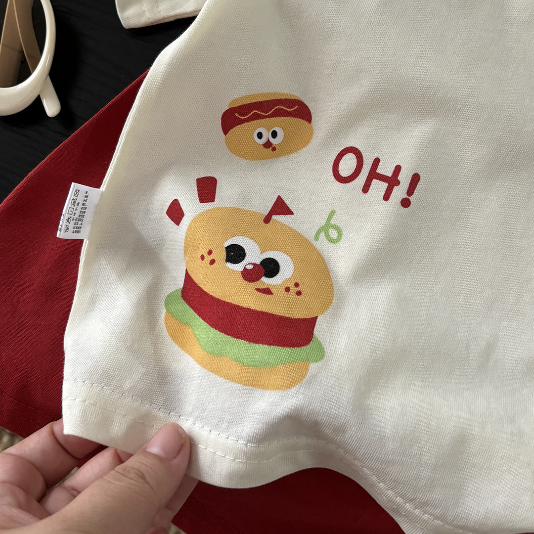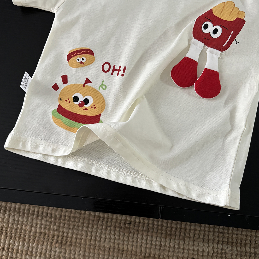 어린이 반팔 정장 여름 새로운 스타일 소년과 소녀 캐주얼 한국어 버전 만화 입체 인형 통기성 여름 투피스 세트