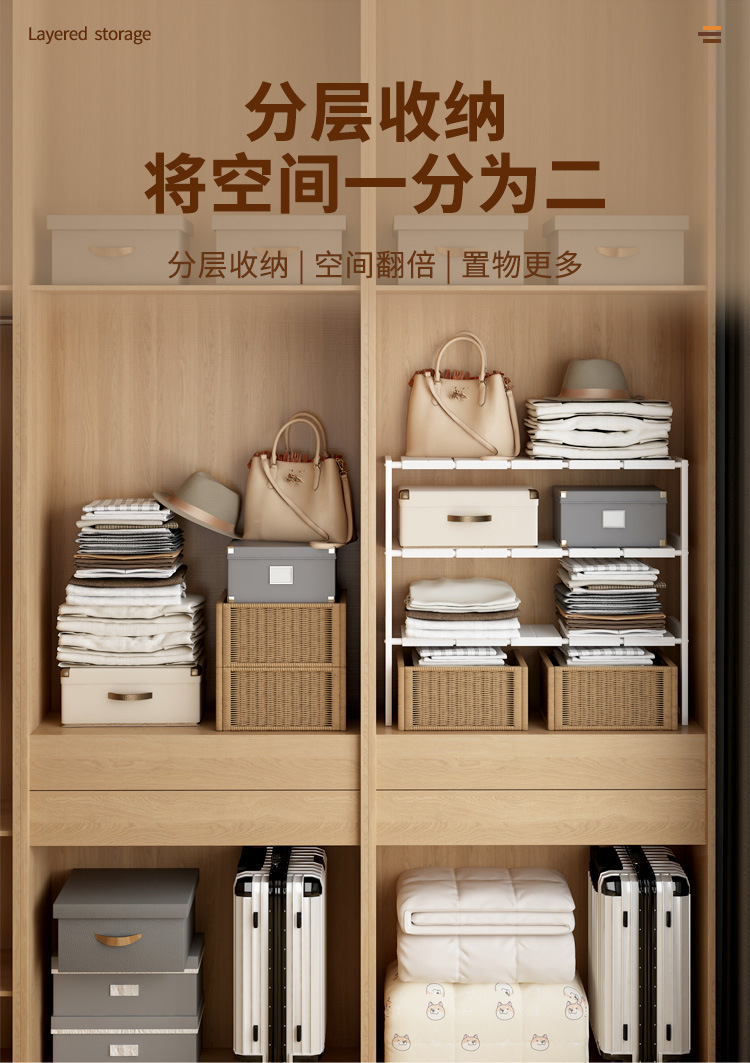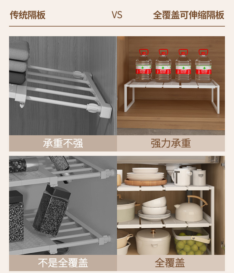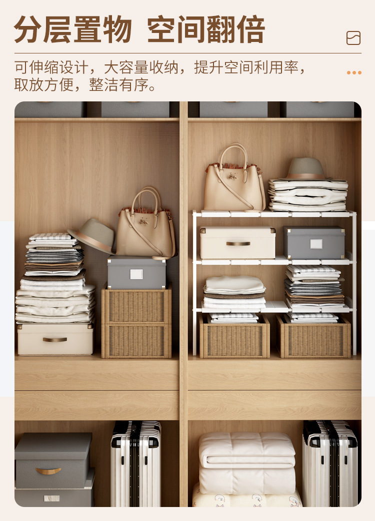 일본 및 한국 수출용 옷장 수납 선반, 칸막이 수납판, 캐비닛, 캐비닛용 다층 확장형 수납 선반, 무타공 설치스토어 가기