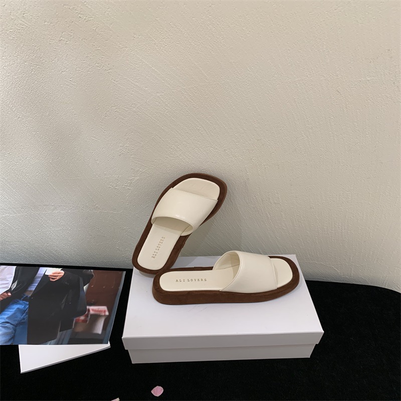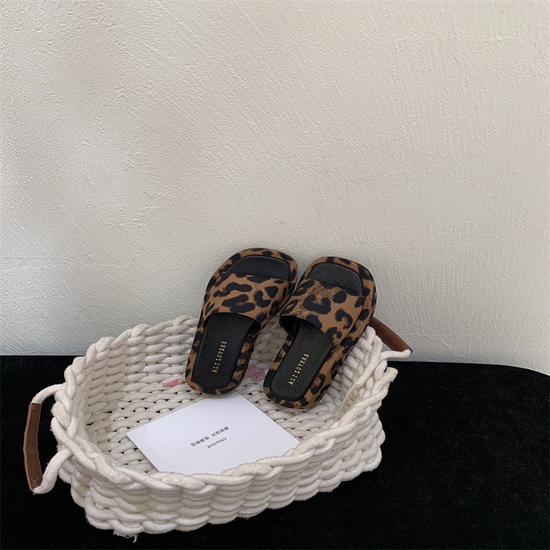 2025년 신상 여름 레오파드 프린트 플랫폼 두꺼운 밑창 오픈 토 슬리퍼 여성용 겉옷용 플랫 슬리퍼스토어 가기