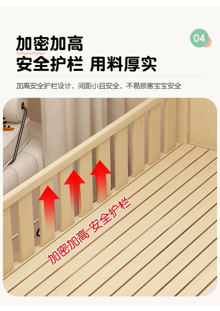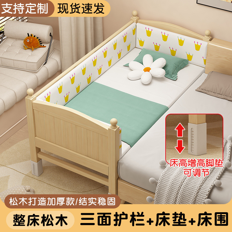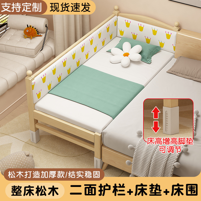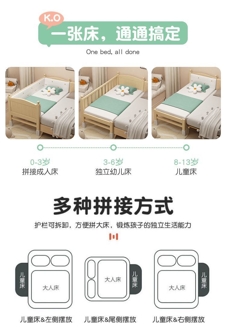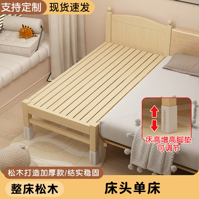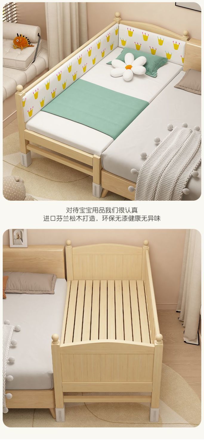 전체 단단한 나무 어린이 접합 침대 아기 침대 플러스 와이드 벨트 가드 레일 조절 가능한 높이 소년 소녀 침대스토어 가기
