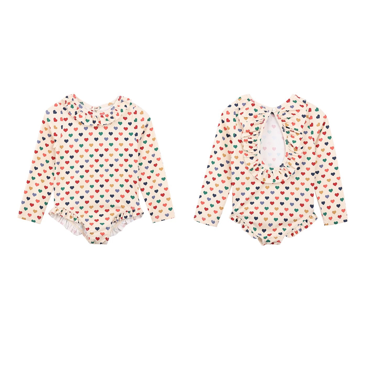 아기 소녀 ins 러브 백리스 원피스 수영복 25 세 소녀 긴팔 자외선 차단 수영복 공주 레이스 수영복