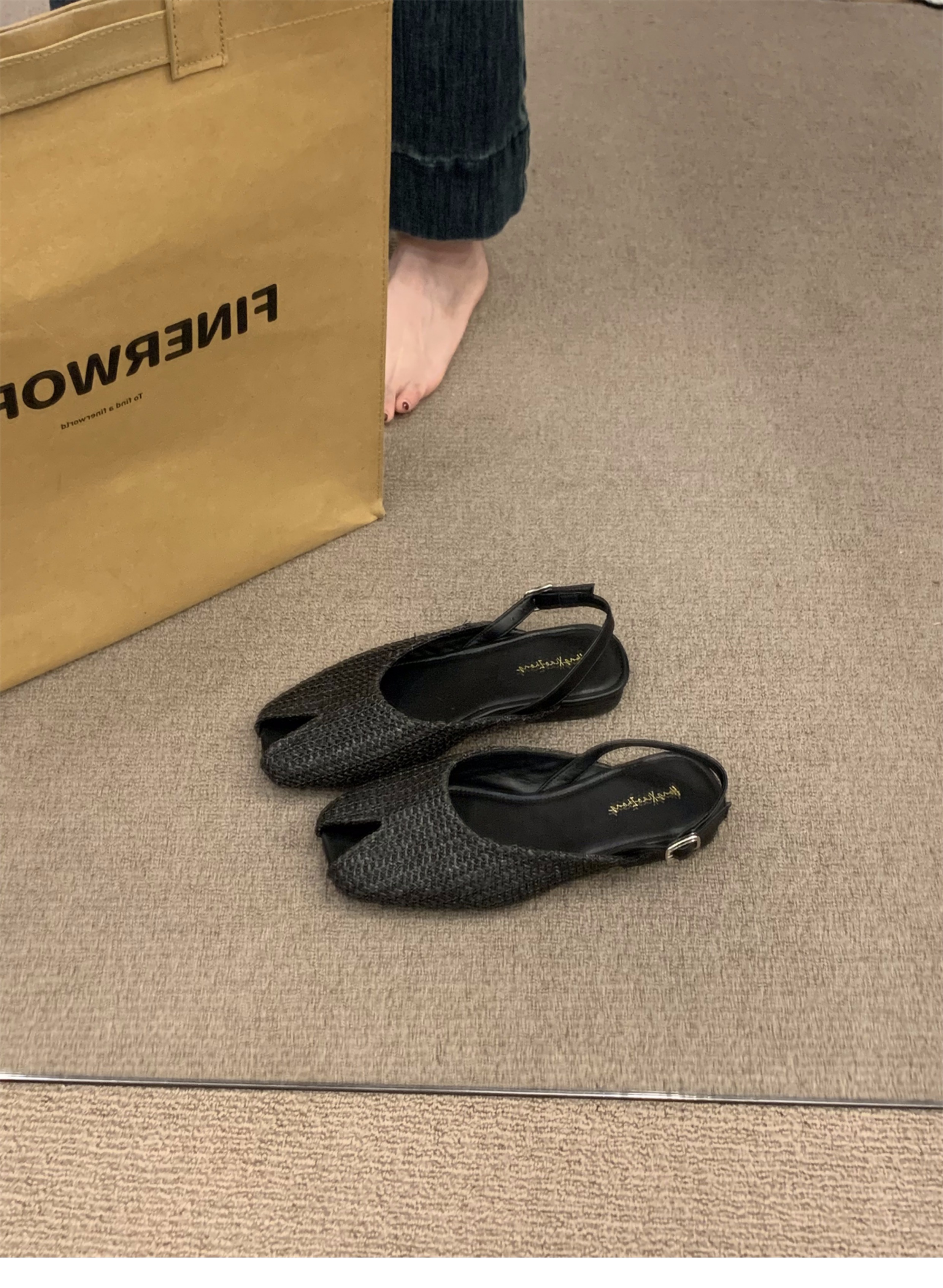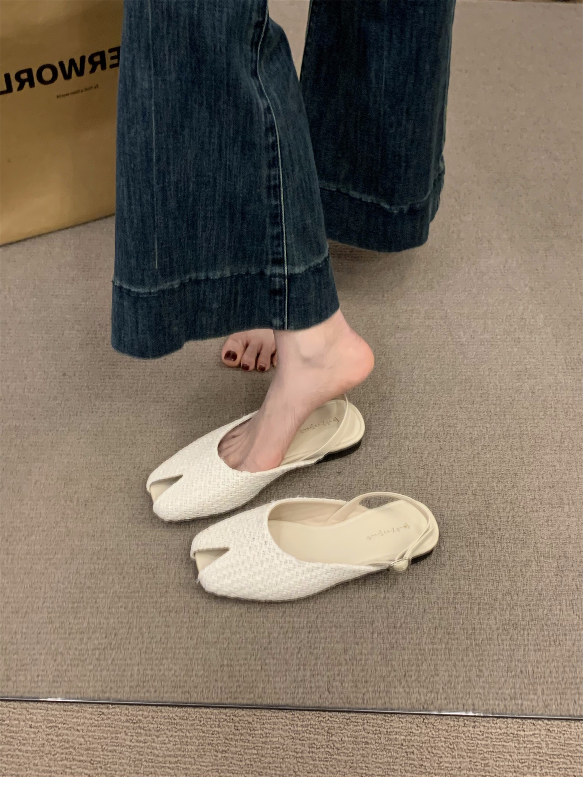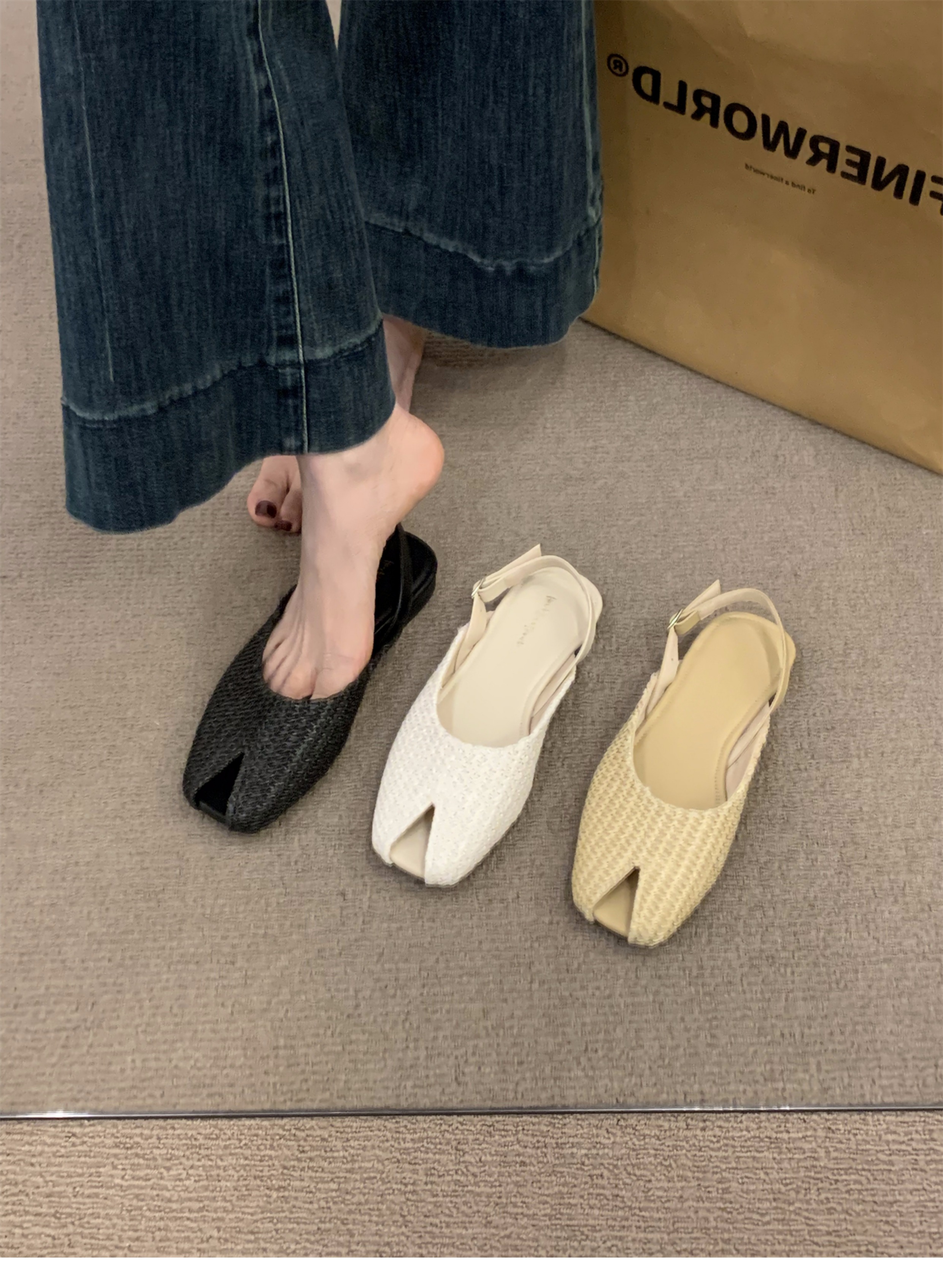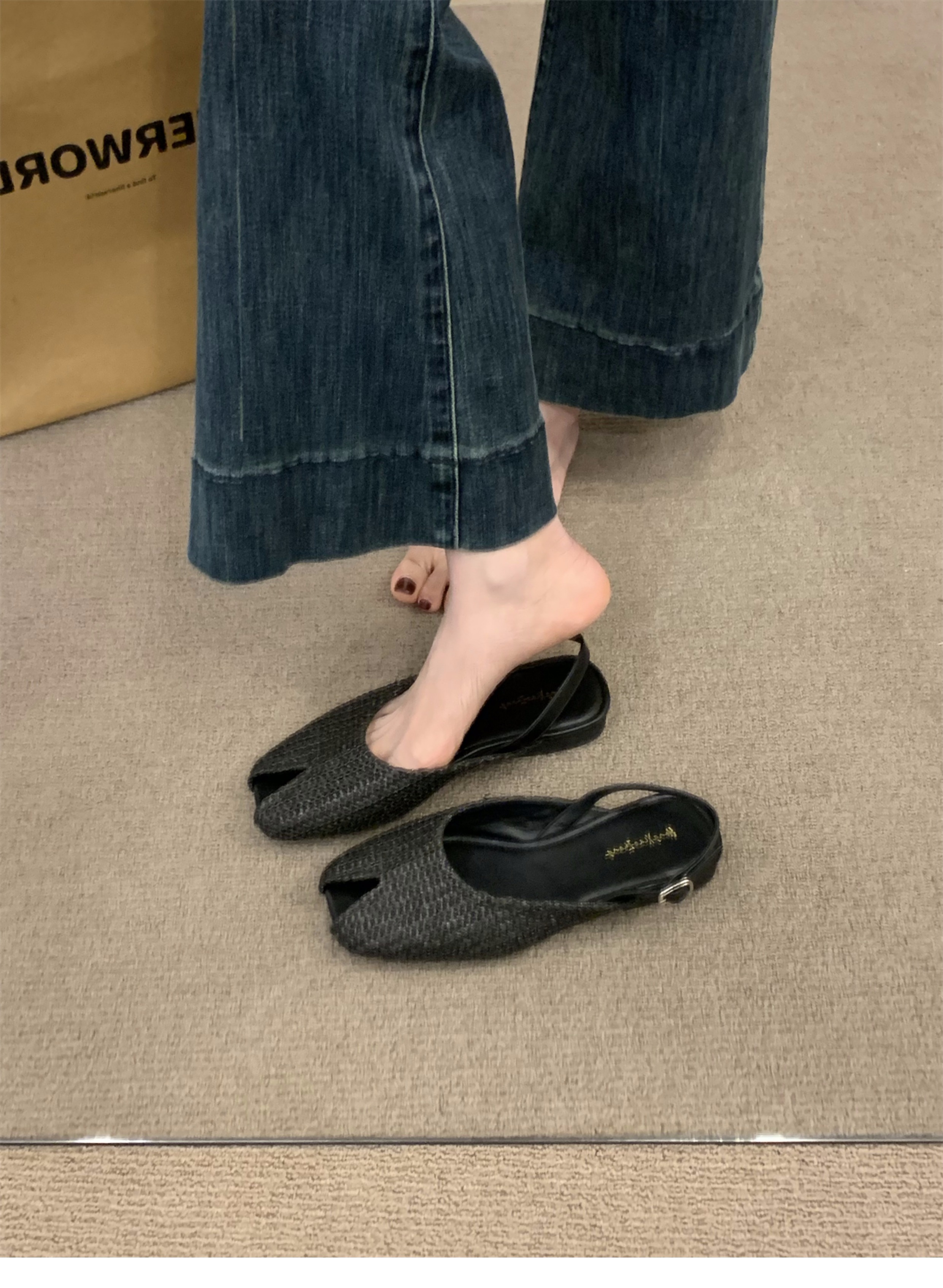 니치 디자인 복고풍 짠 발가락 샌들 여성 신발 2025 새로운 여름 부드러운 밑창 휴가 스타일 로마 신발스토어 가기