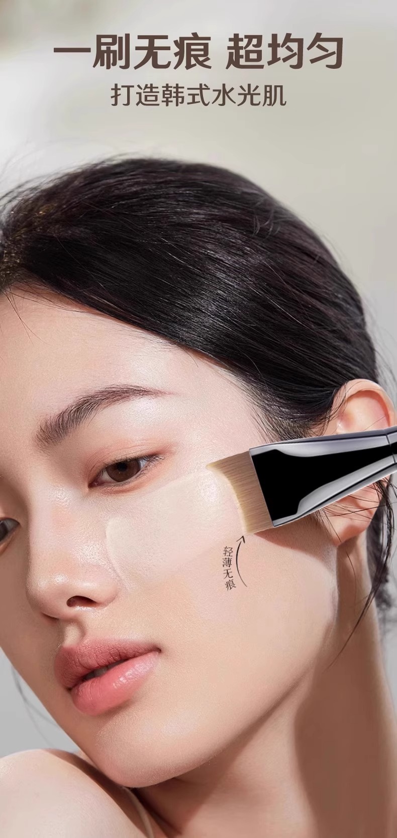 원라인 파운데이션 브러쉬, 플랫헤드, 리퀴드 파운데이션을 먹이지 않는 특수 트레이스리스 메이크업 브러쉬, 가볍고 얇은 초승달 모양의 마스크 브러쉬 팔레트