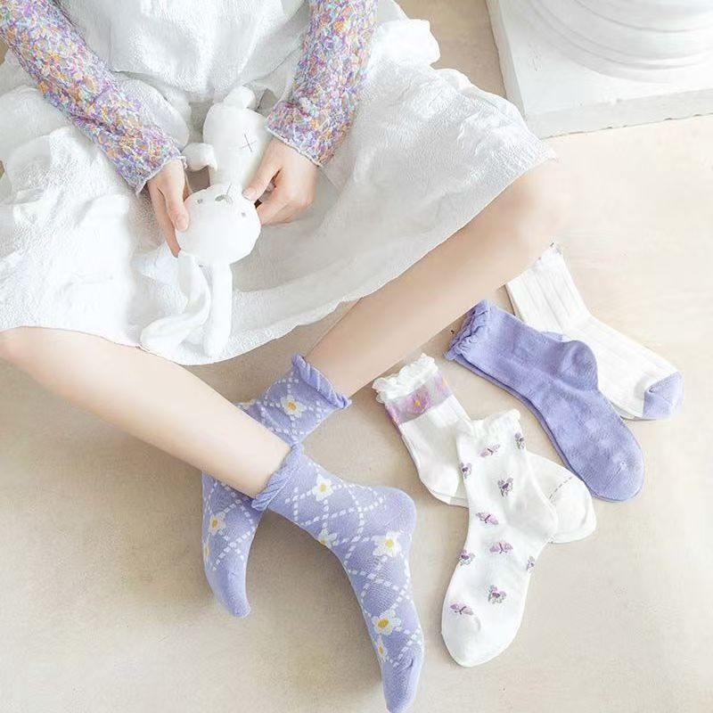 여성용 종아리 중간 양말 가을 ins 트렌디 레이스 양말 공주 스타킹 로리타 여성 양말 면 양말 두꺼운 도매스토어 가기