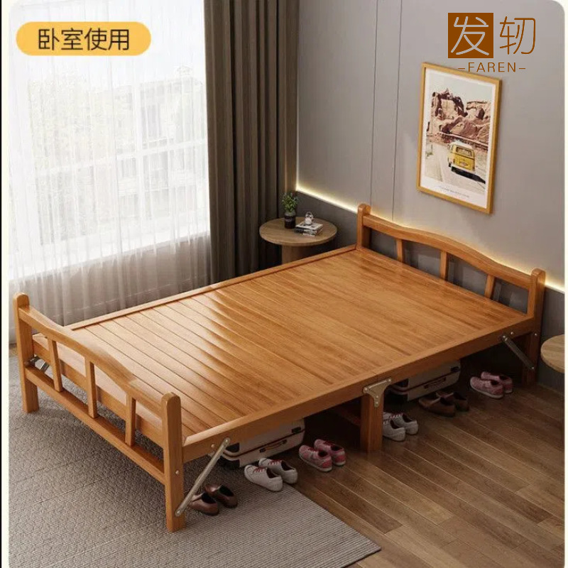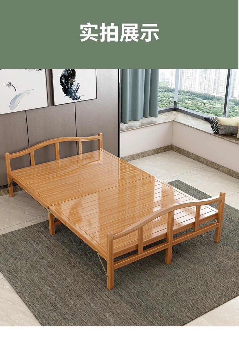대나무 침대 접이식 침대 싱글 더블 점심 시간 간단한 가정용 성인 임대 쿨 침대 대나무 단단한 침대스토어 가기