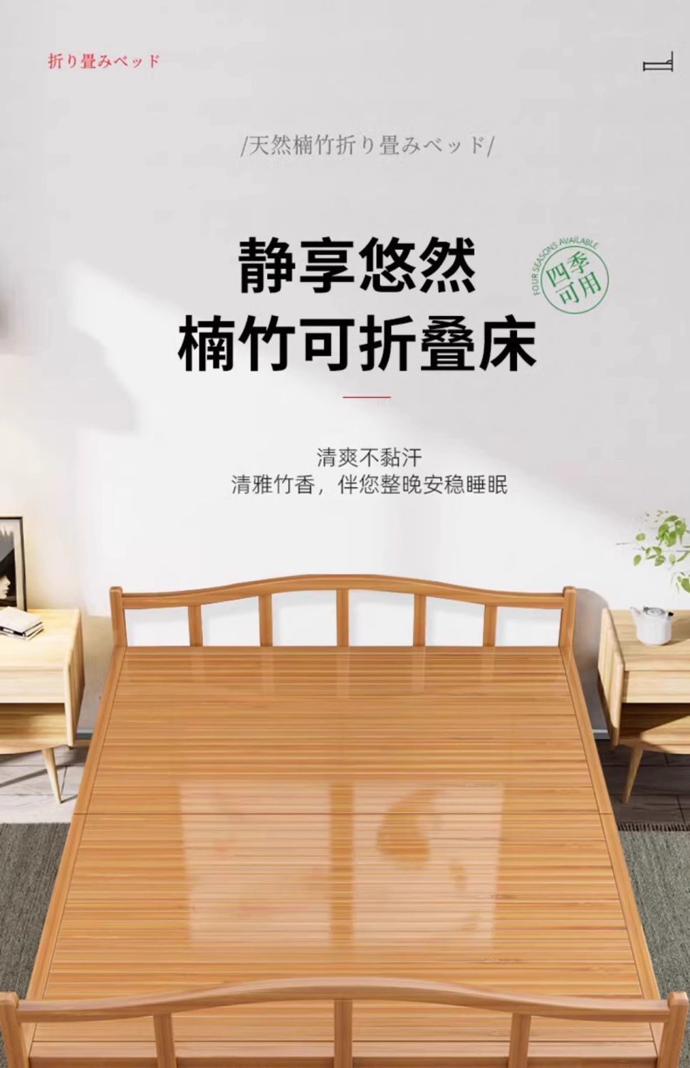 • 두꺼운 고급 대나무 접이식 침대 [중형] 폭 100
