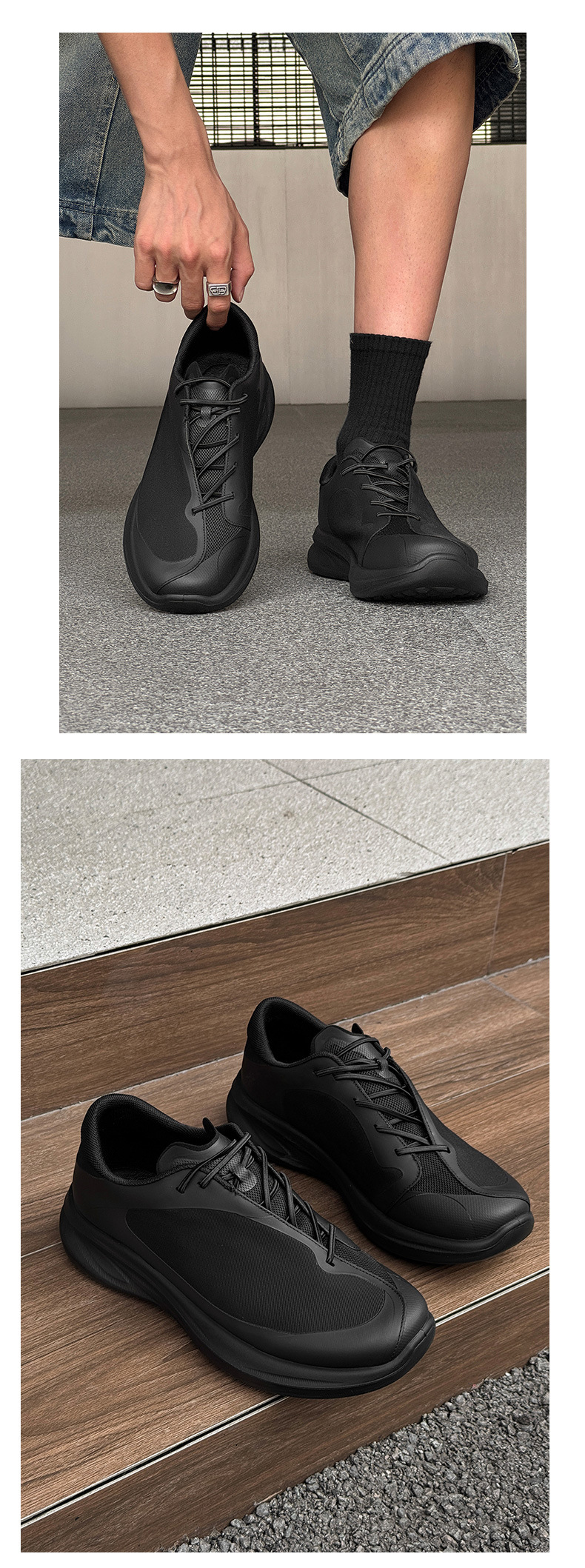 파리 더비 슈즈 남성용 빅 헤드 두꺼운 밑창으로 고급 여름 캐주얼 가죽 신발 홍콩 스타일 38458 블랙-M