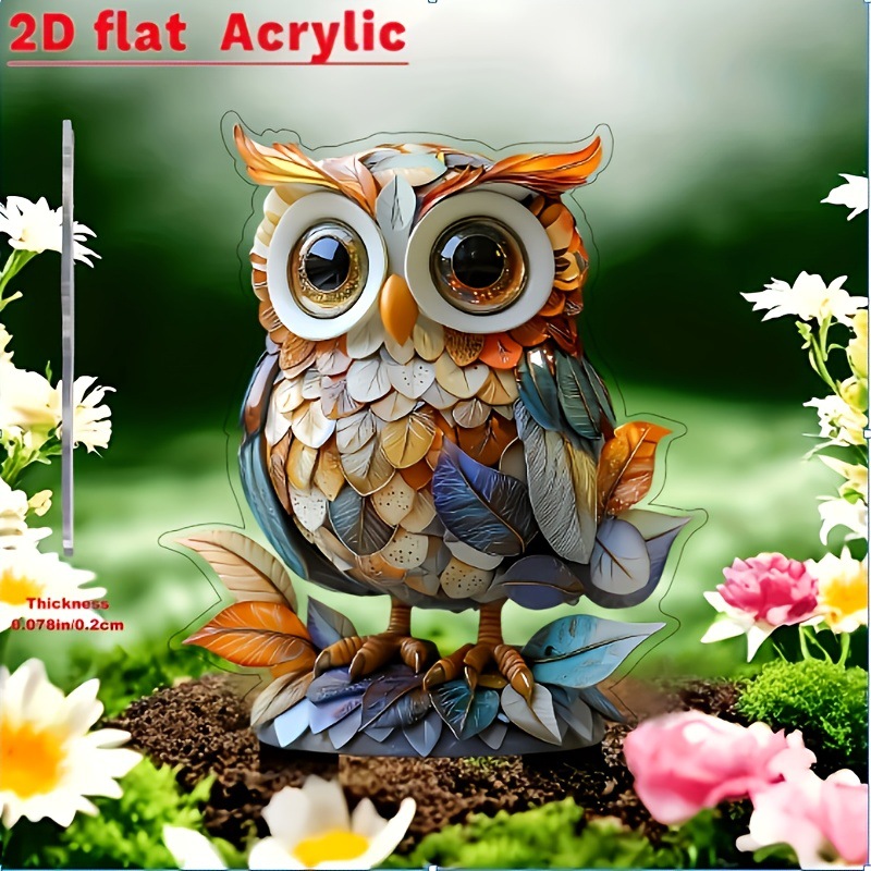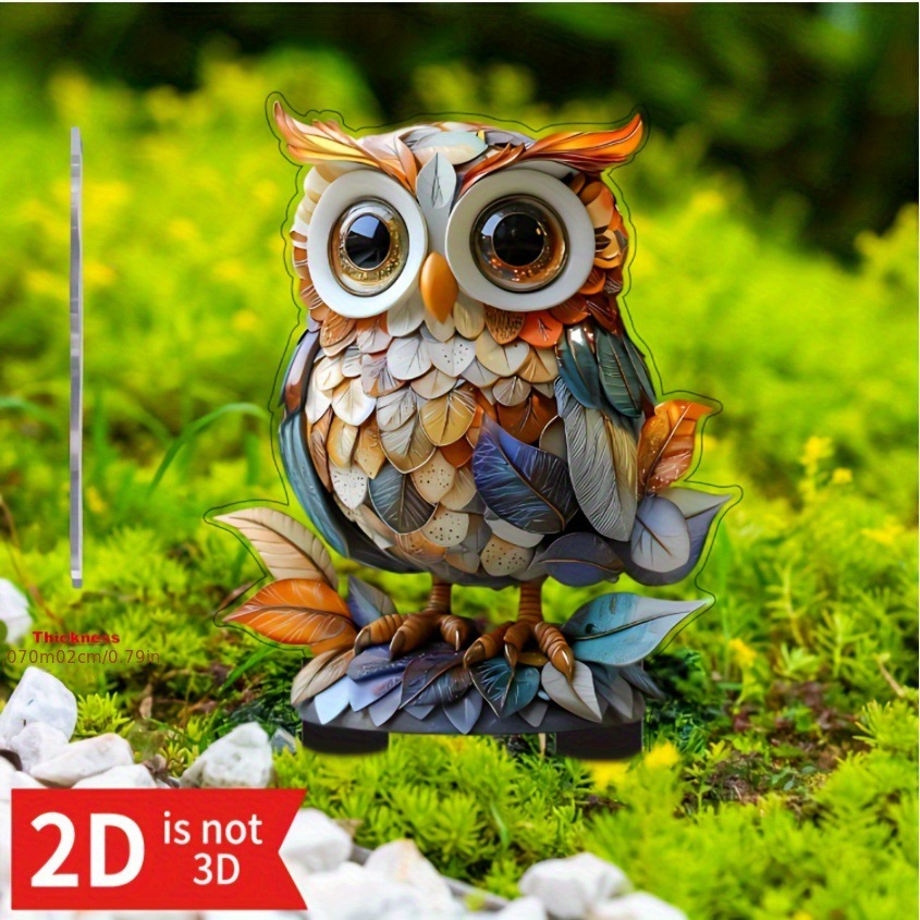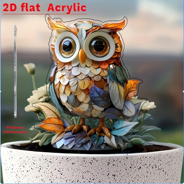 2D 평면, 2D 올빼미 정원 장식 말뚝, 화분에 적합한 실내 및 실외 아크릴 정원 장식품스토어 가기