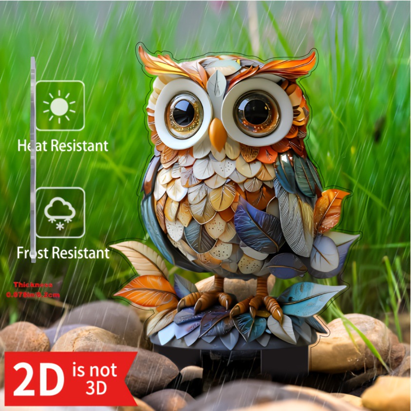 2D 평면, 2D 올빼미 정원 장식 말뚝, 화분에 적합한 실내 및 실외 아크릴 정원 장식품