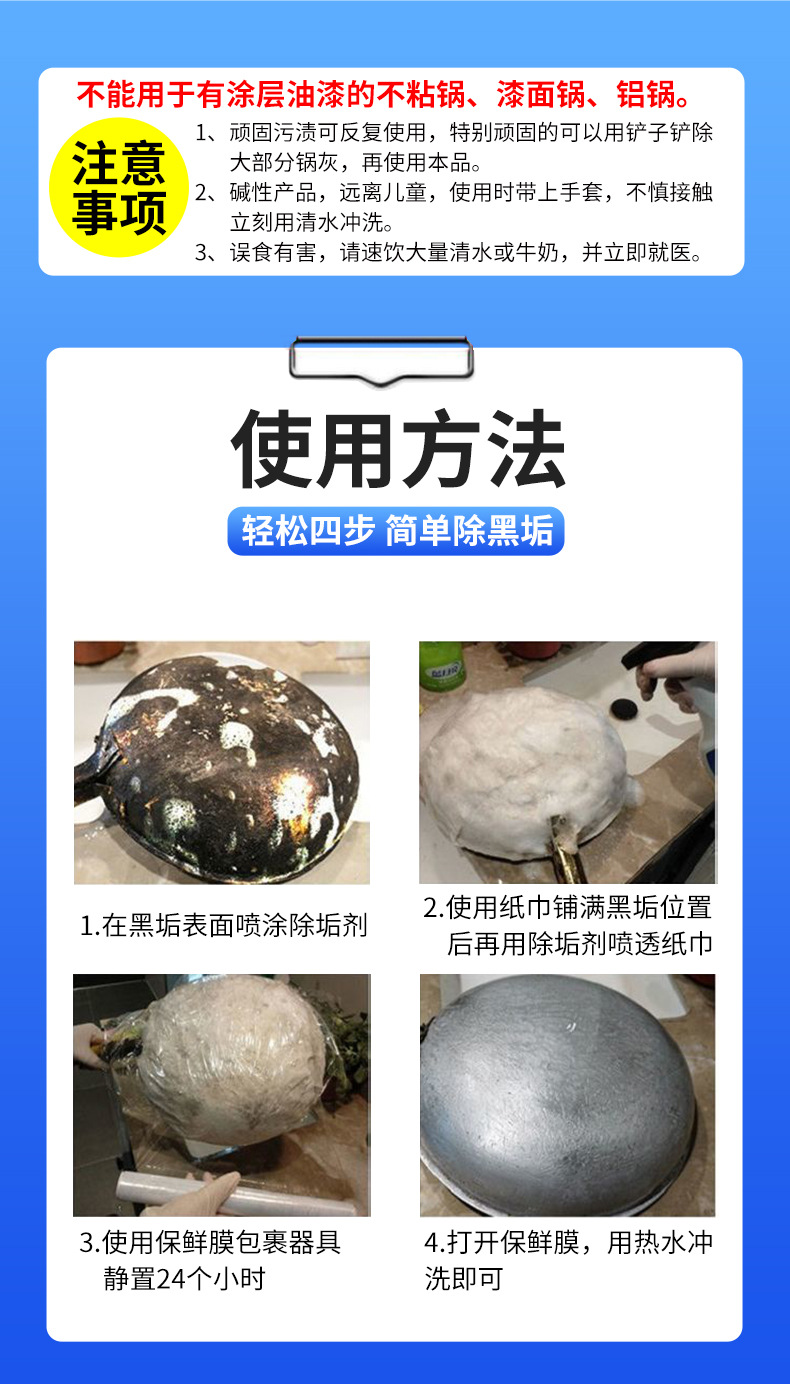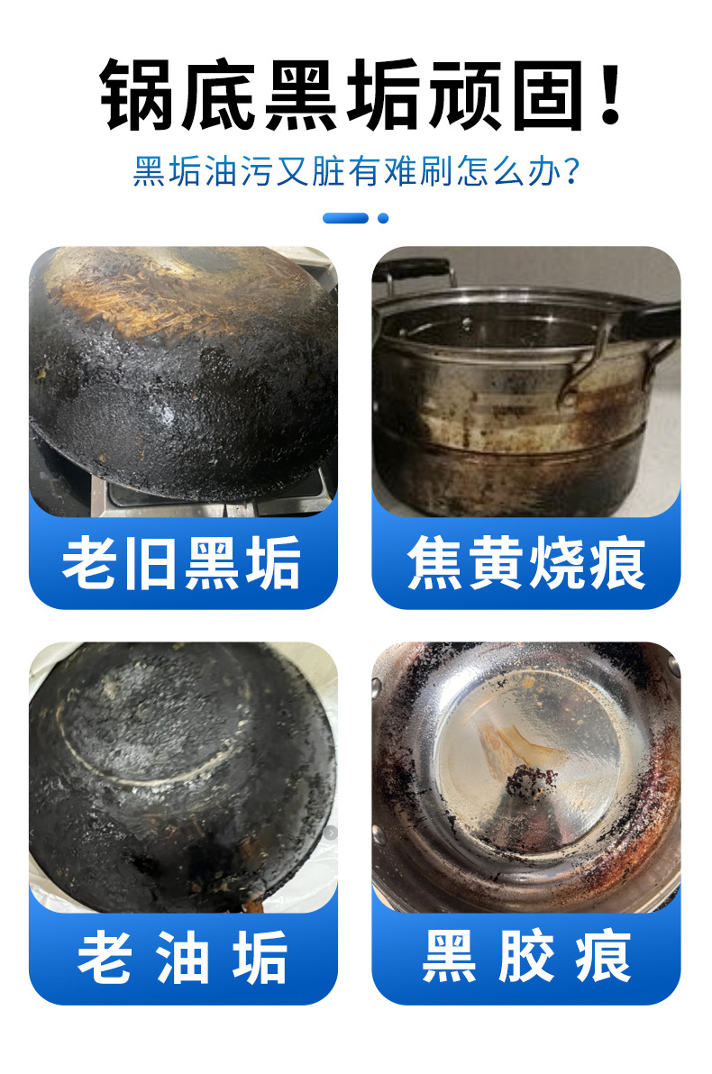 냄비 바닥 검은 때 세척제, 강력한 오염 제거, 검은색 탄소 제거, 중유 제거, 철 냄비 세척, 스테인레스 스틸 주방 냄비 유물