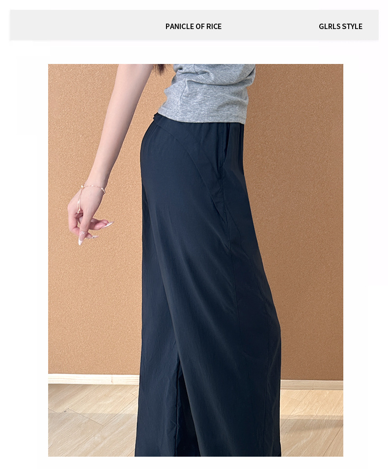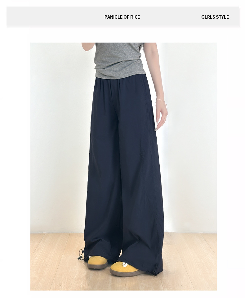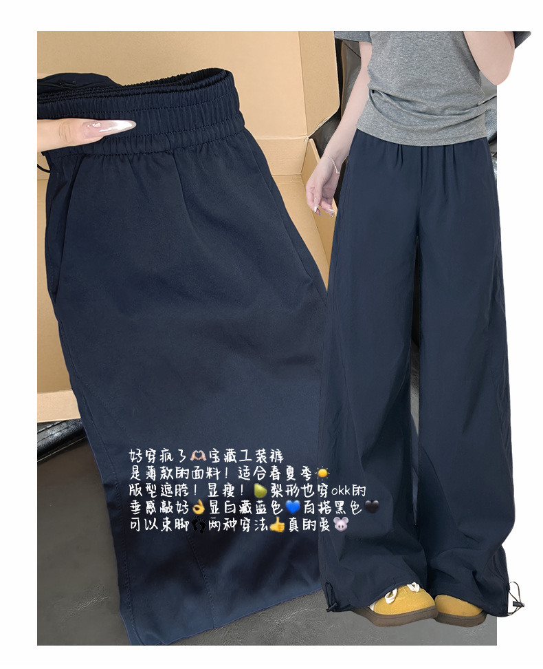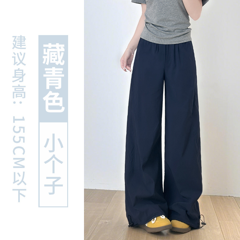 여성용 아메리칸 블루 오버올 여름 얇은 2025 새로운 하이 웨이스트 스트레이트 스포츠 하이킹 바지 속건성 와이드 레그 팬츠
