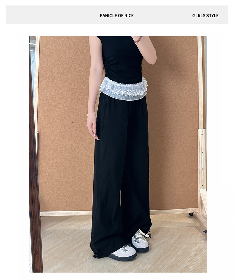 여성용 아메리칸 블루 오버올 여름 얇은 2025 새로운 하이 웨이스트 스트레이트 스포츠 하이킹 바지 속건성 와이드 레그 팬츠스토어 가기