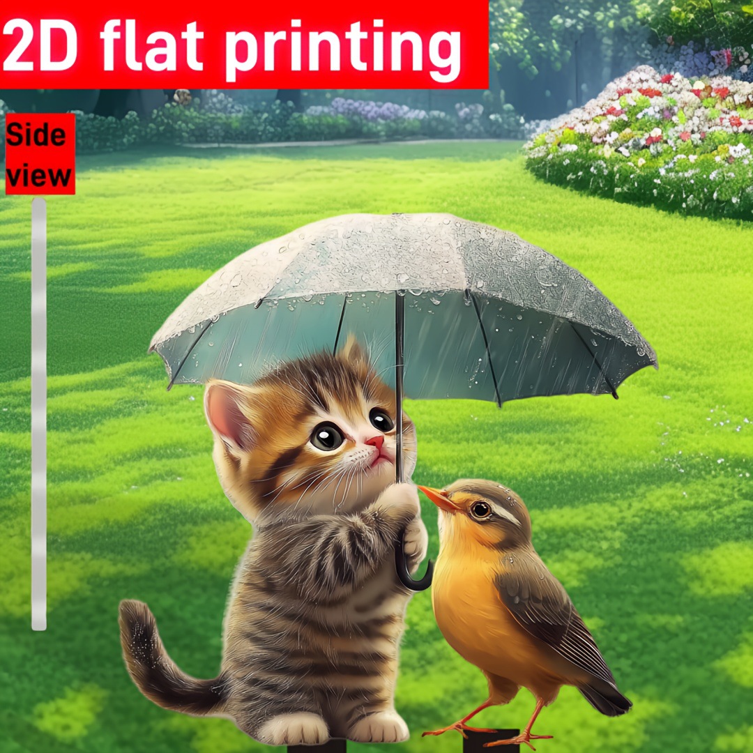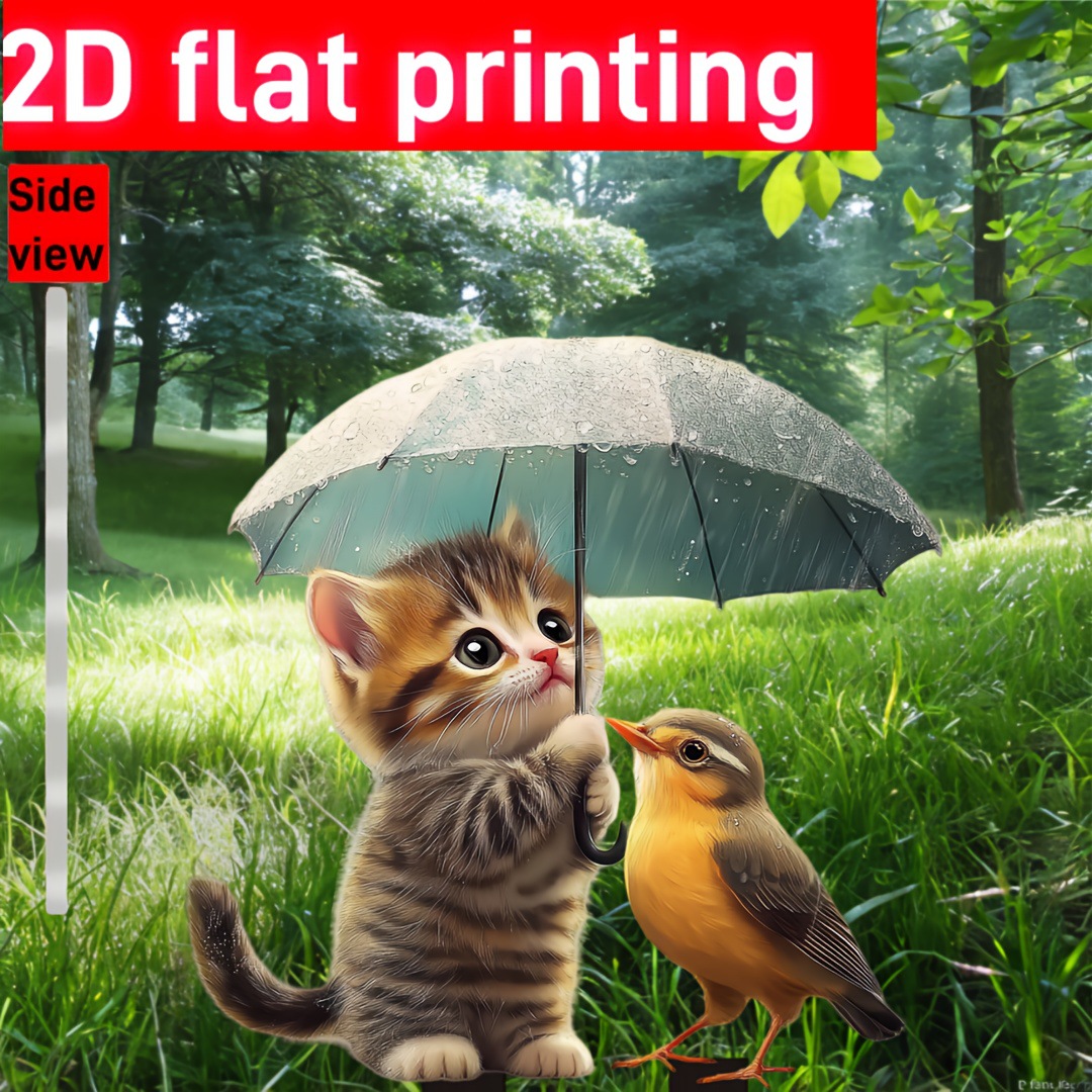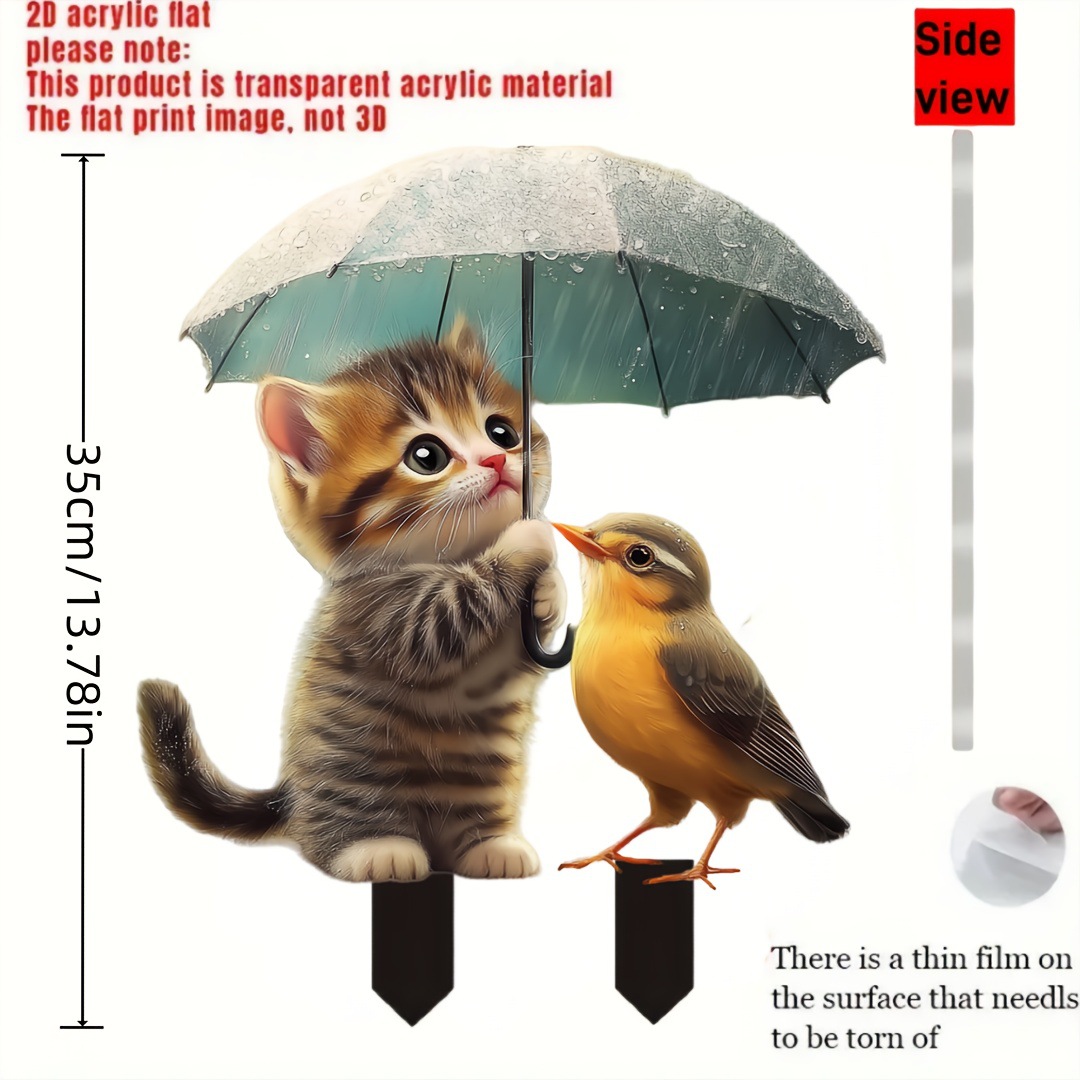 2D 평면 인쇄 1개, 35cm / 13.8inch 새가 있는 새로운 고양이 아크릴 소재 안뜰 장식