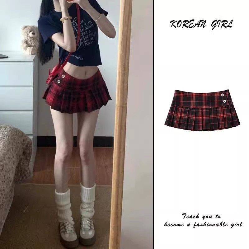 JK 스타일 로우 웨이스트 체크 무늬 미니 스커트 여성 봄 여름 신작 달콤하고 매콤한 노출 방지 다리 길이 A 라인 플리츠 스커트스토어 가기