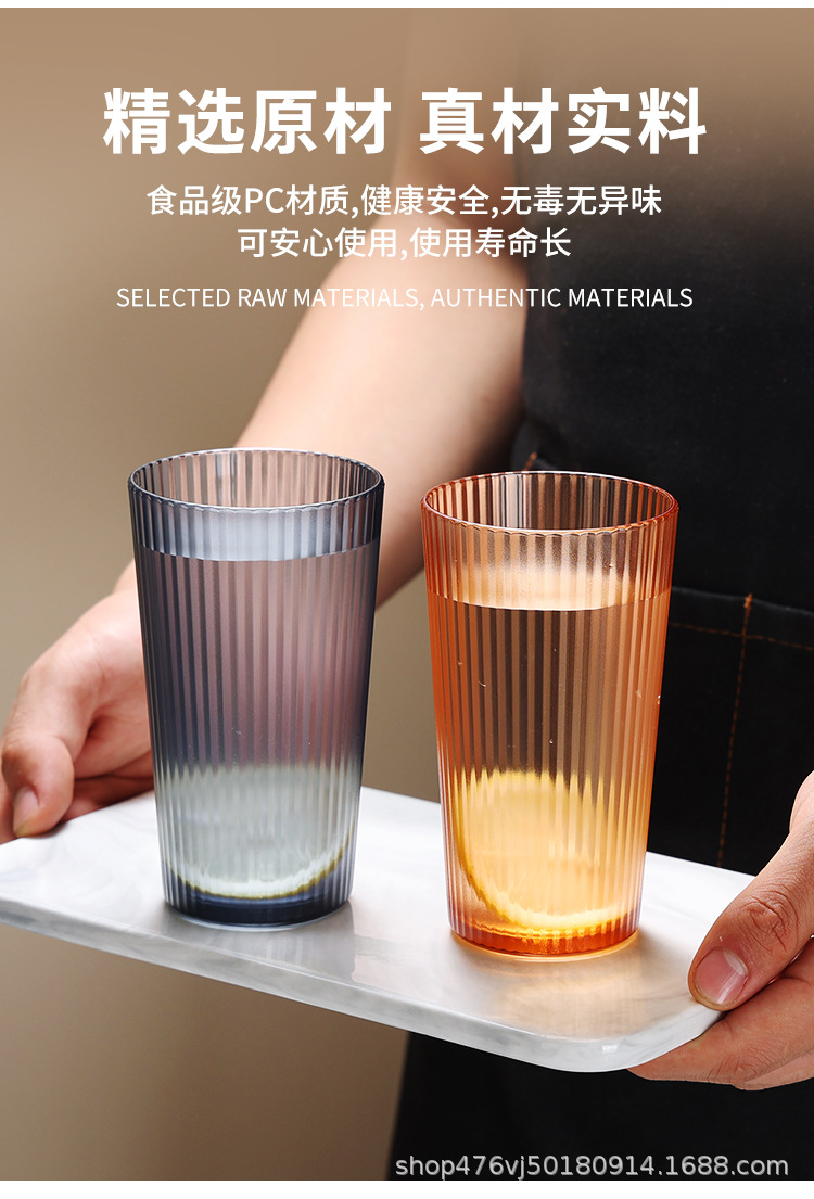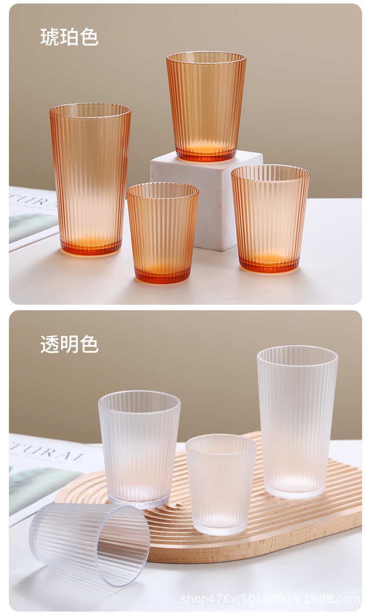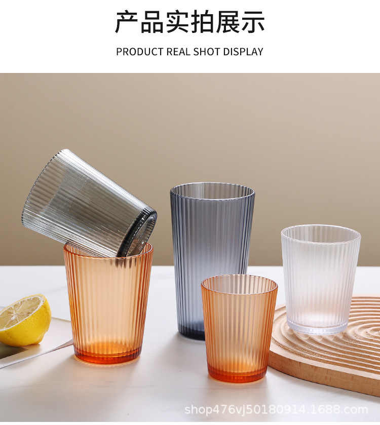 PC 플라스틱 컵, 상업용 낙하 방지 및 고온 방지 차 컵, 줄무늬 구강 세척제 컵, 음료 컵, 쌓을 수 있는 물컵 도매스토어 가기