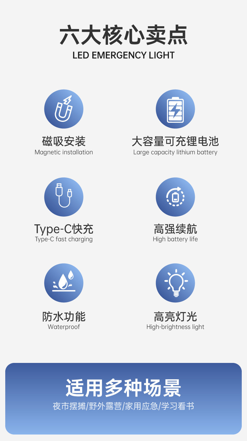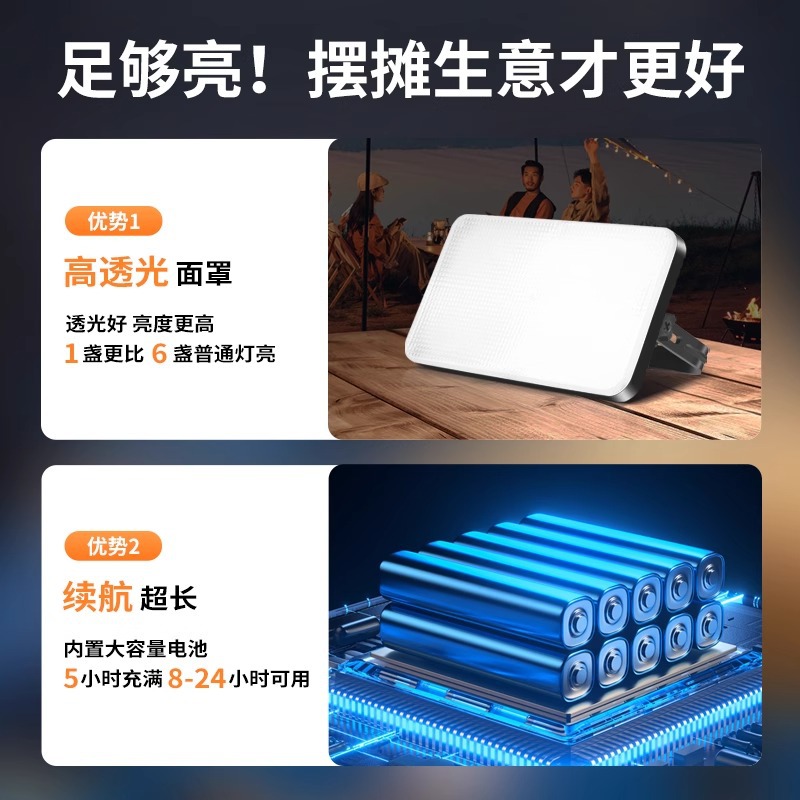 야시장용 노점 조명, 초고휘도 충전식 LED, 매우 긴 배터리 수명, 대용량 야외 비상 캠핑 조명스토어 가기