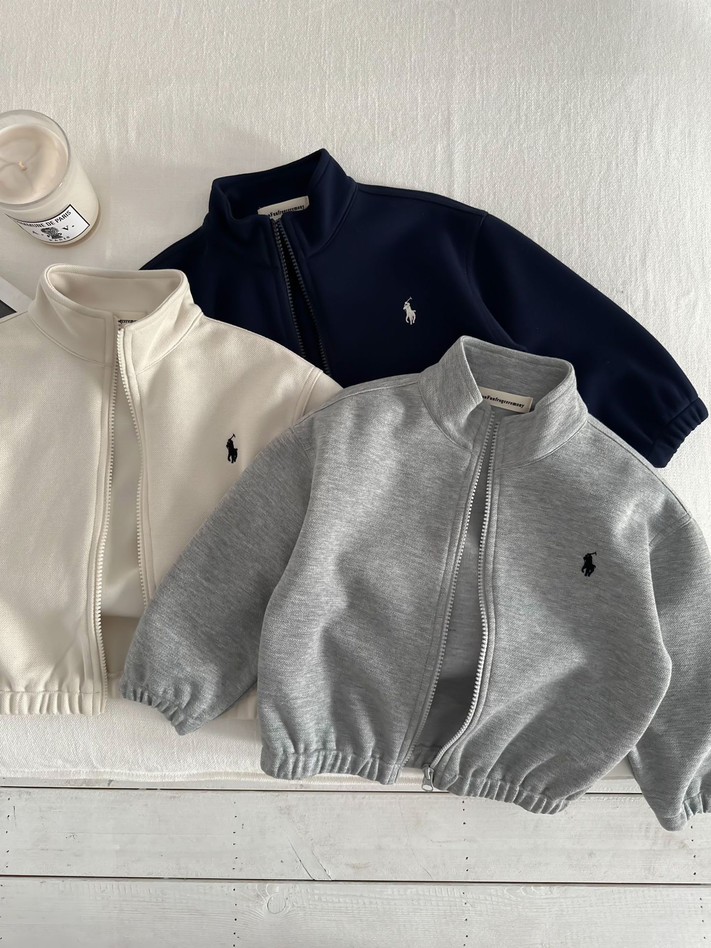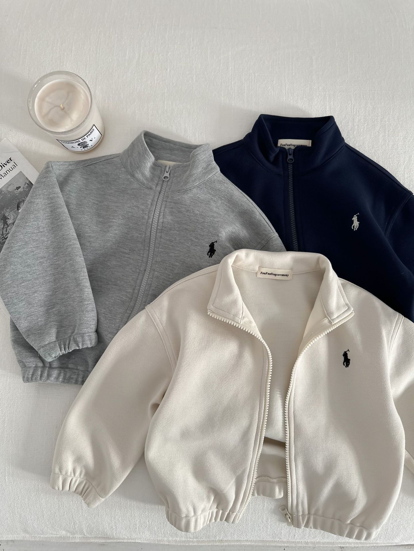 재고 있음 아동용 재킷 2025 가을 새로운 스타일 남성 및 여성 의류 자수 스탠드 칼라 재킷 베이비 지퍼 스웨트 셔츠스토어 가기