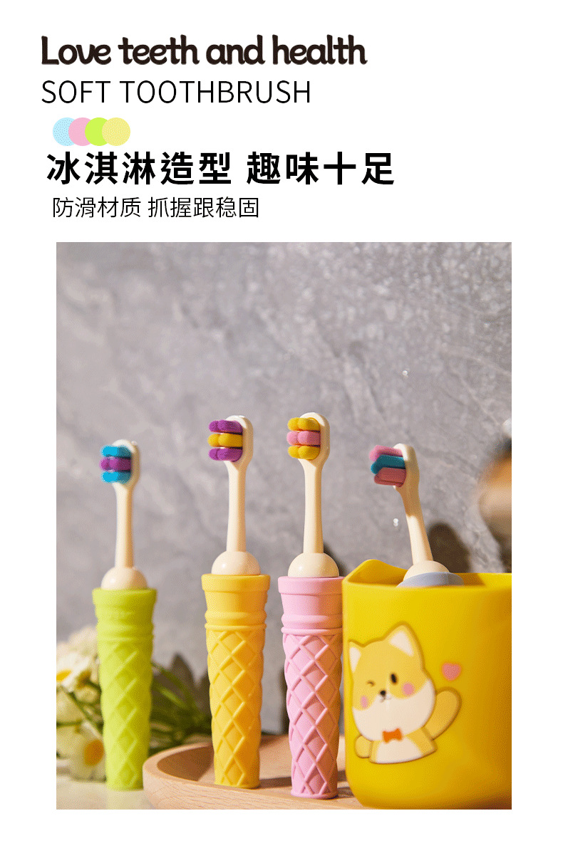 마카롱 컬러 아이스크림 모양 어린이 부드러운 칫솔 아기 치아 교환 기간 작은 칫솔 가정용 미끄럼 방지 도매스토어 가기