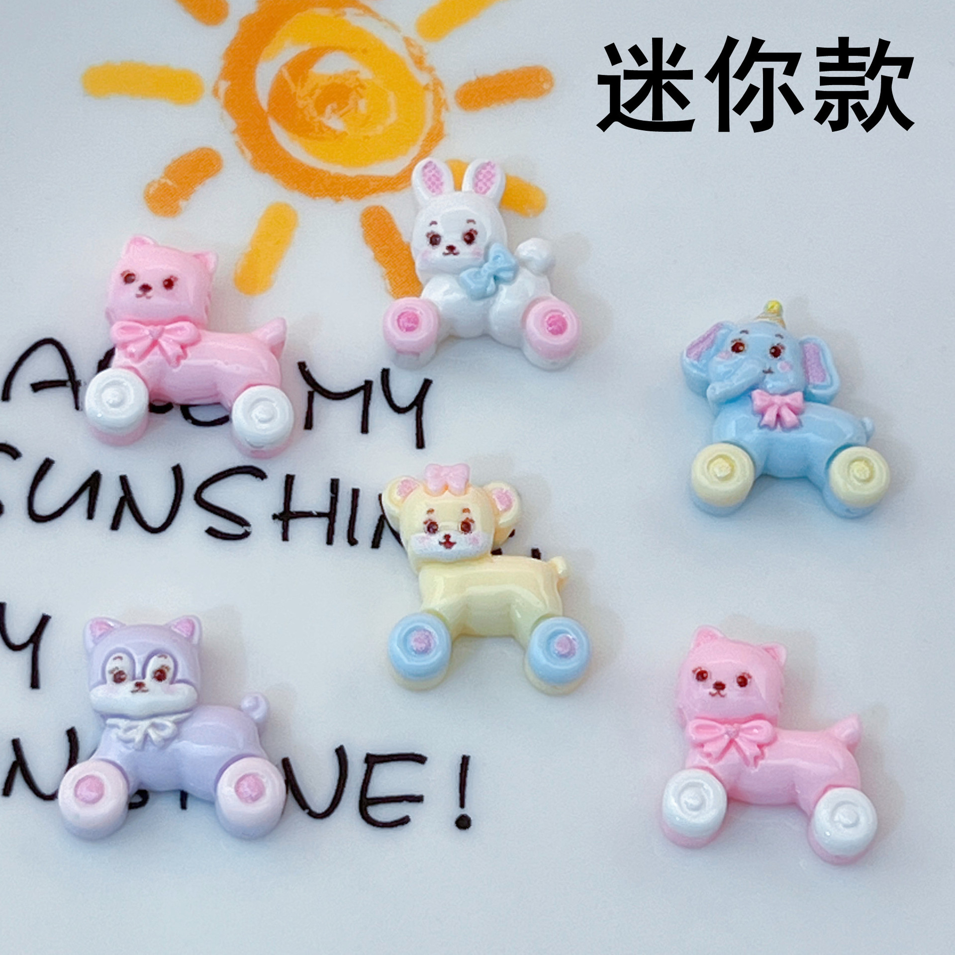 미니 만화 동물 토끼 고양이 여우 아기 코끼리 장난감 자동차 머리핀 매니큐어 크림 접착제 수지 액세서리