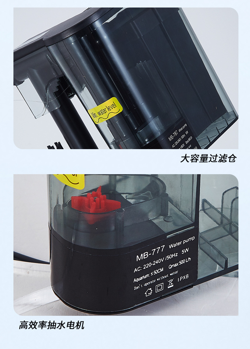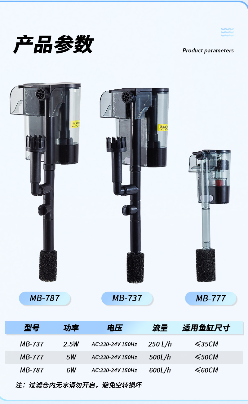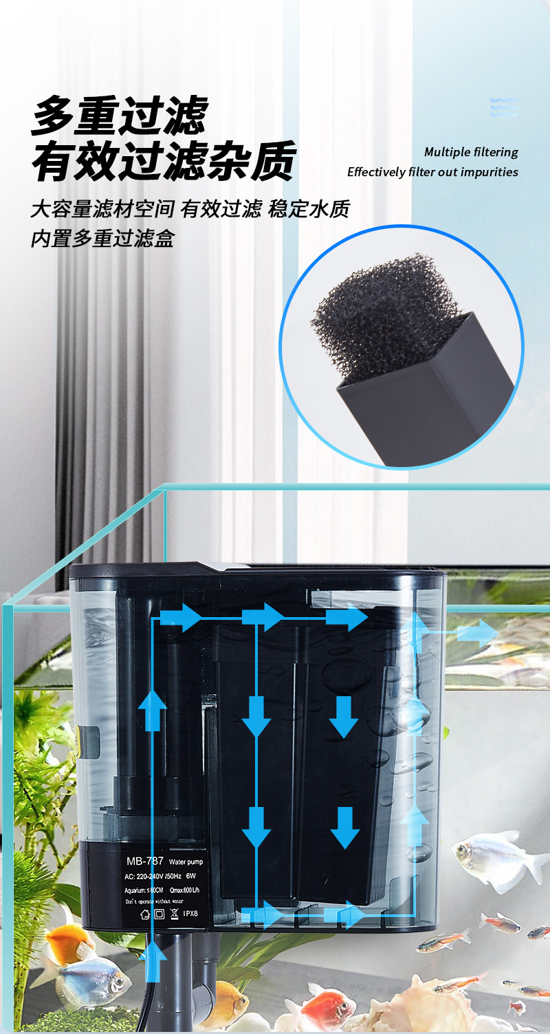 수조 벽걸이 필터 폭포 3-in-1 정수 순환 외부 필터 박스형 무소음 강제 필터