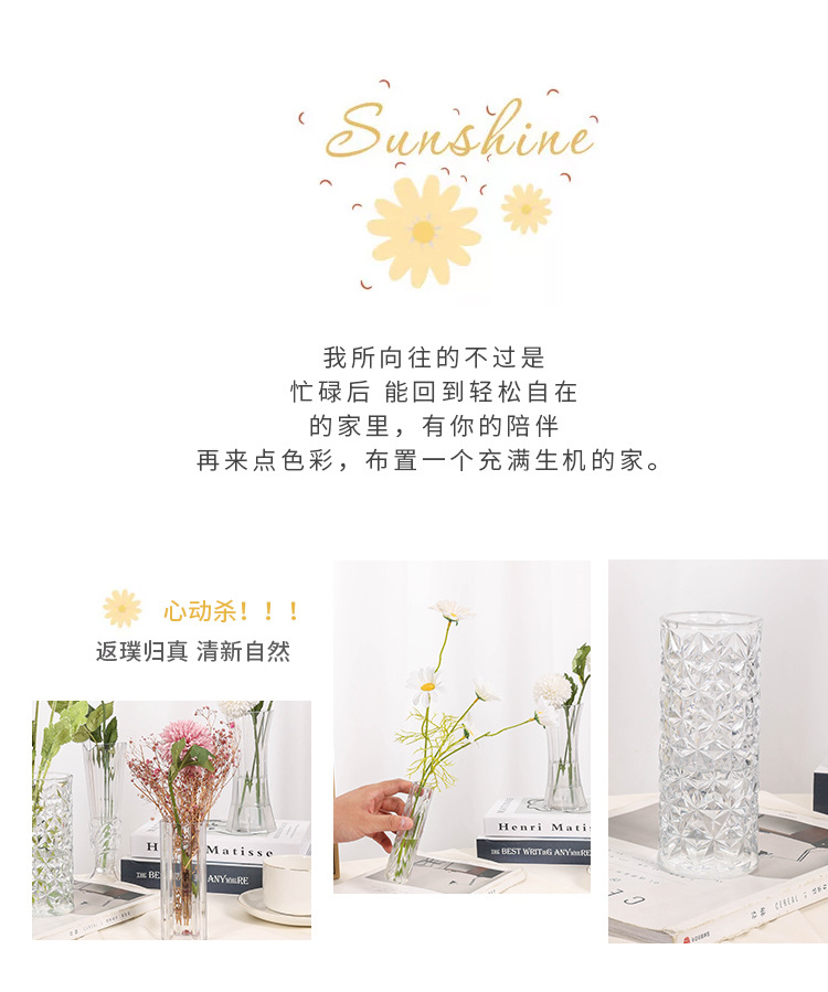 플라스틱 투명 꽃병, 투명도가 높은 모조 유리 꽃통, 부유한 대나무 장미 수경 용기, 거실 꽃꽂이 장식품스토어 가기