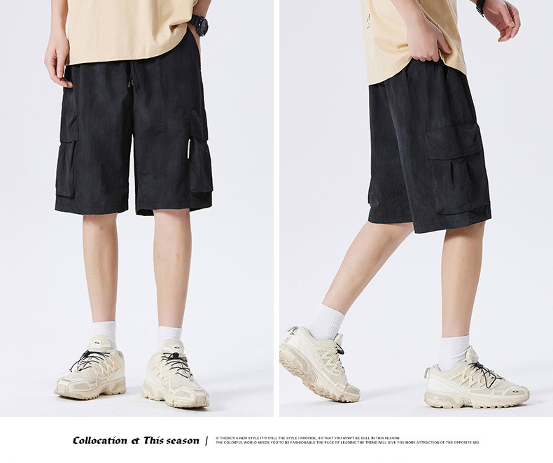 얇은 일본 복고풍 캐주얼 대형 포켓 카고 반바지 남성 여름 유행 브랜드 루즈하고 다재다능한 스포츠 중간 길이 바지