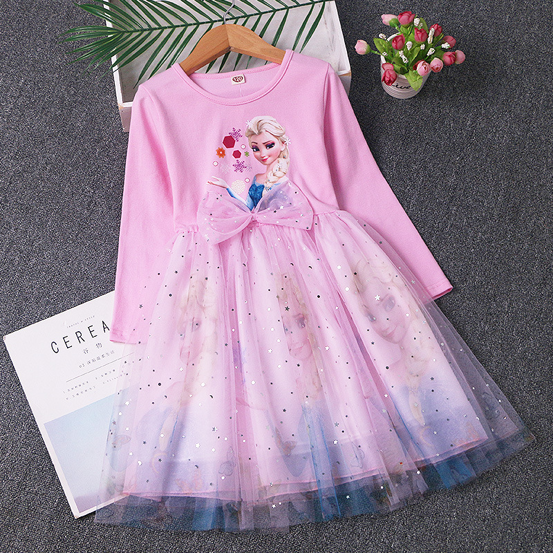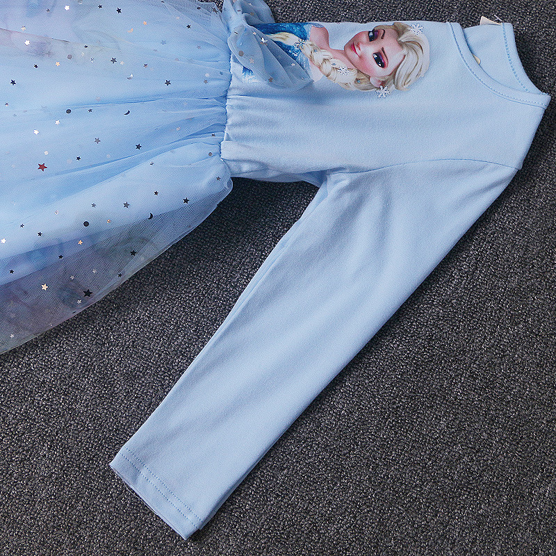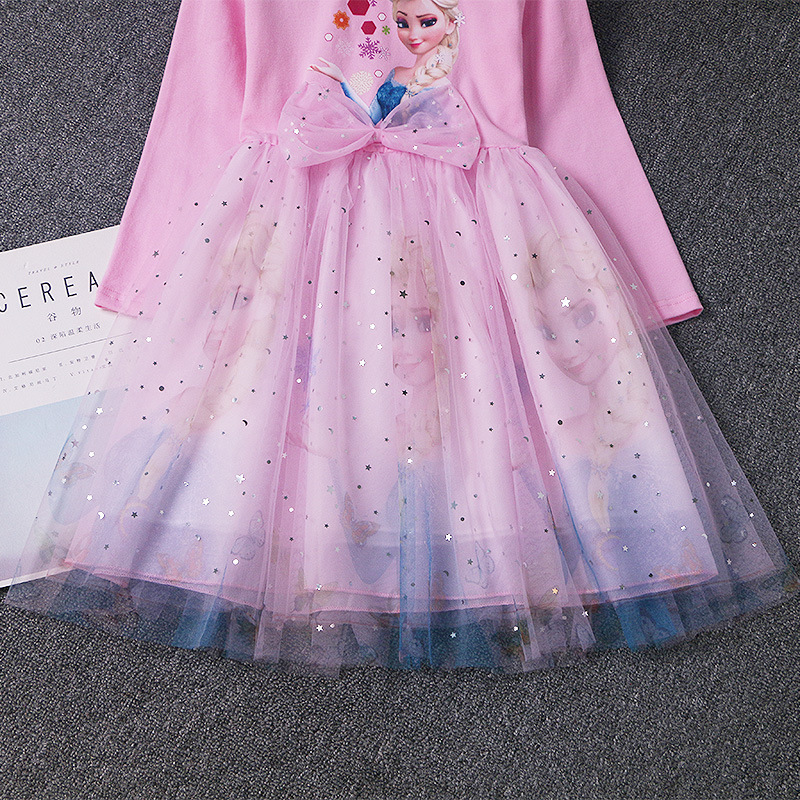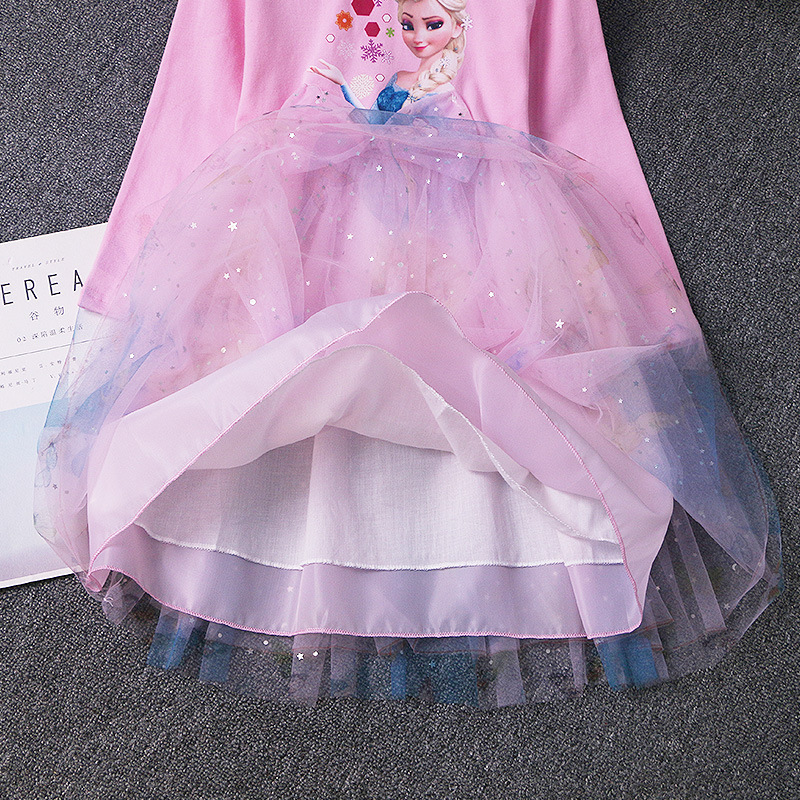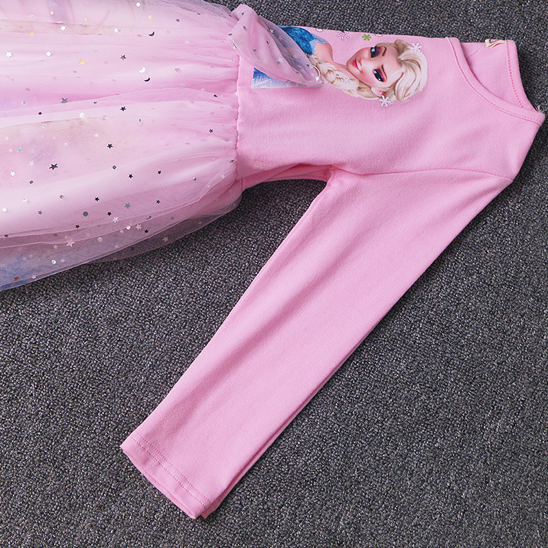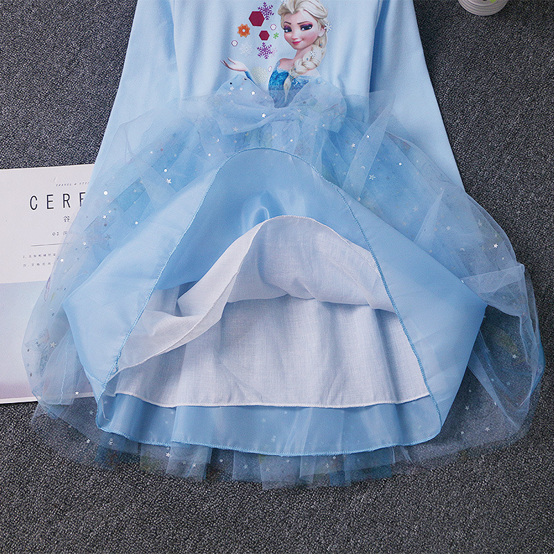 겨울왕국 공주 드레스 소녀 엘사 긴팔 베이비 코튼 가을 옷 어린이 퍼프 거즈 드레스 생일 드레스 유행