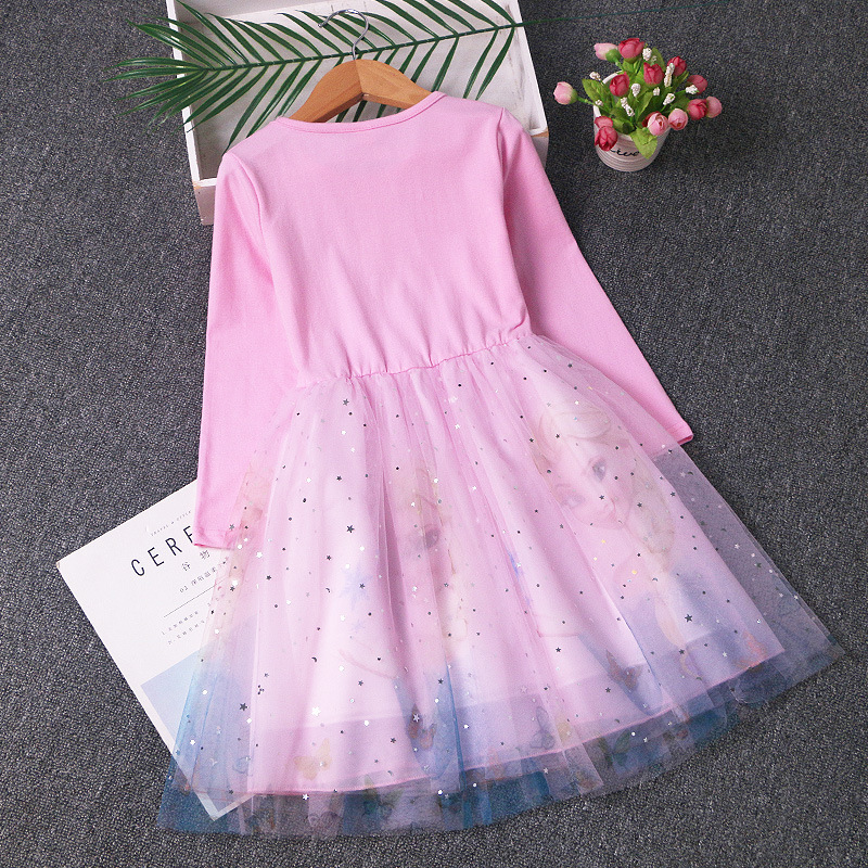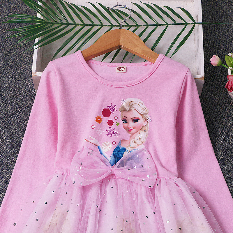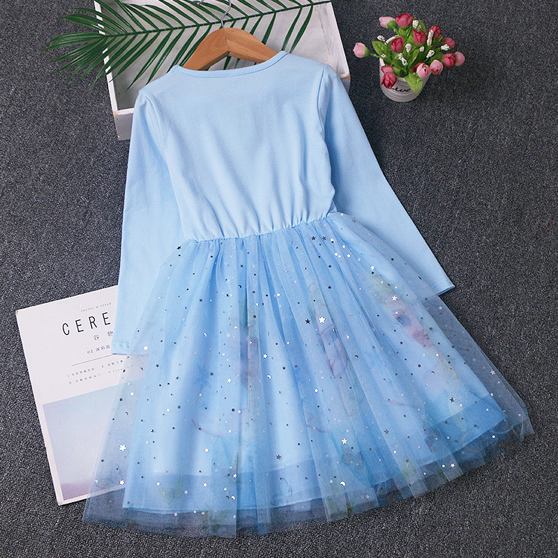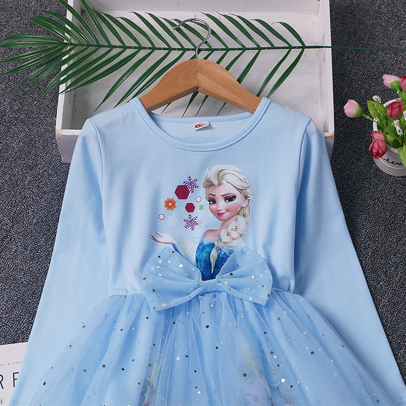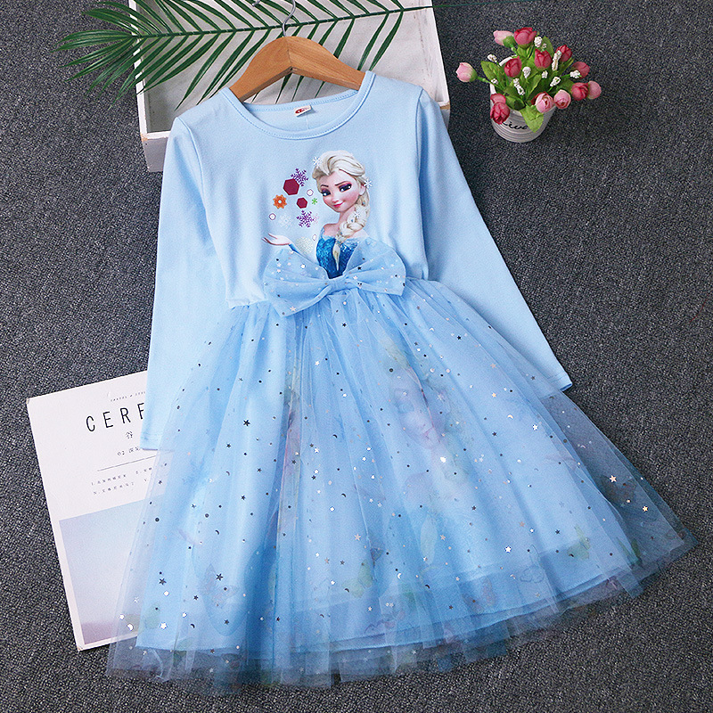 겨울왕국 공주 드레스 소녀 엘사 긴팔 베이비 코튼 가을 옷 어린이 퍼프 거즈 드레스 생일 드레스 유행스토어 가기