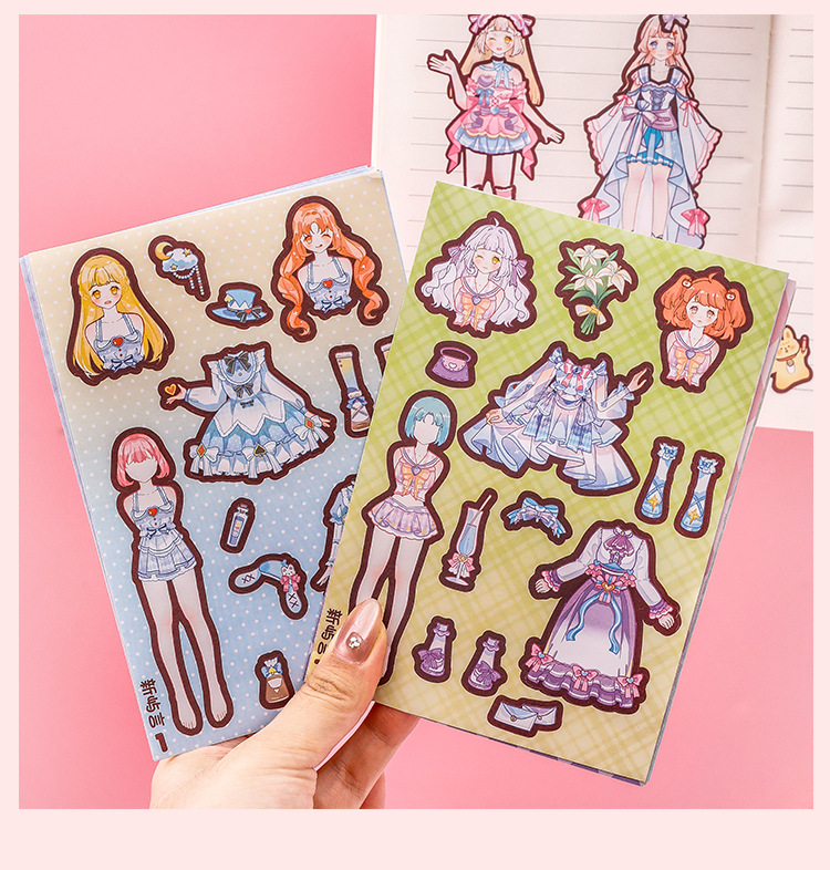 귀여운 소녀 드레스 업 스티커 만화 소녀 diy 핸드북 장식 스티커 고가 의상 스티커 선물