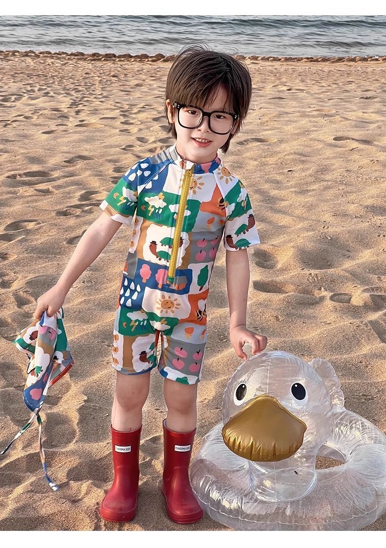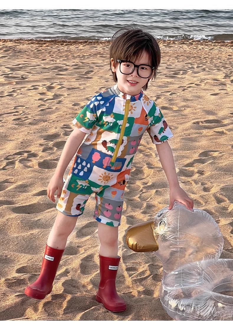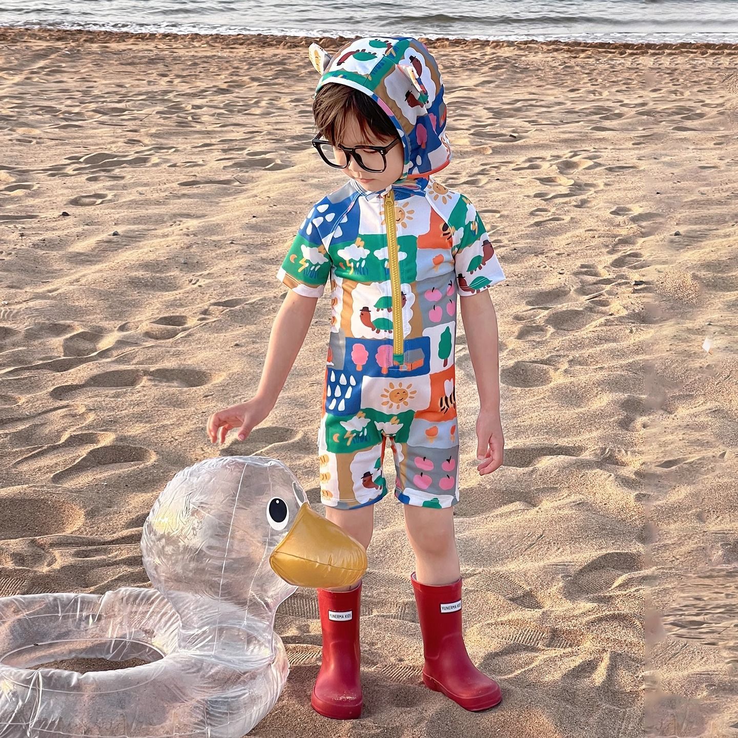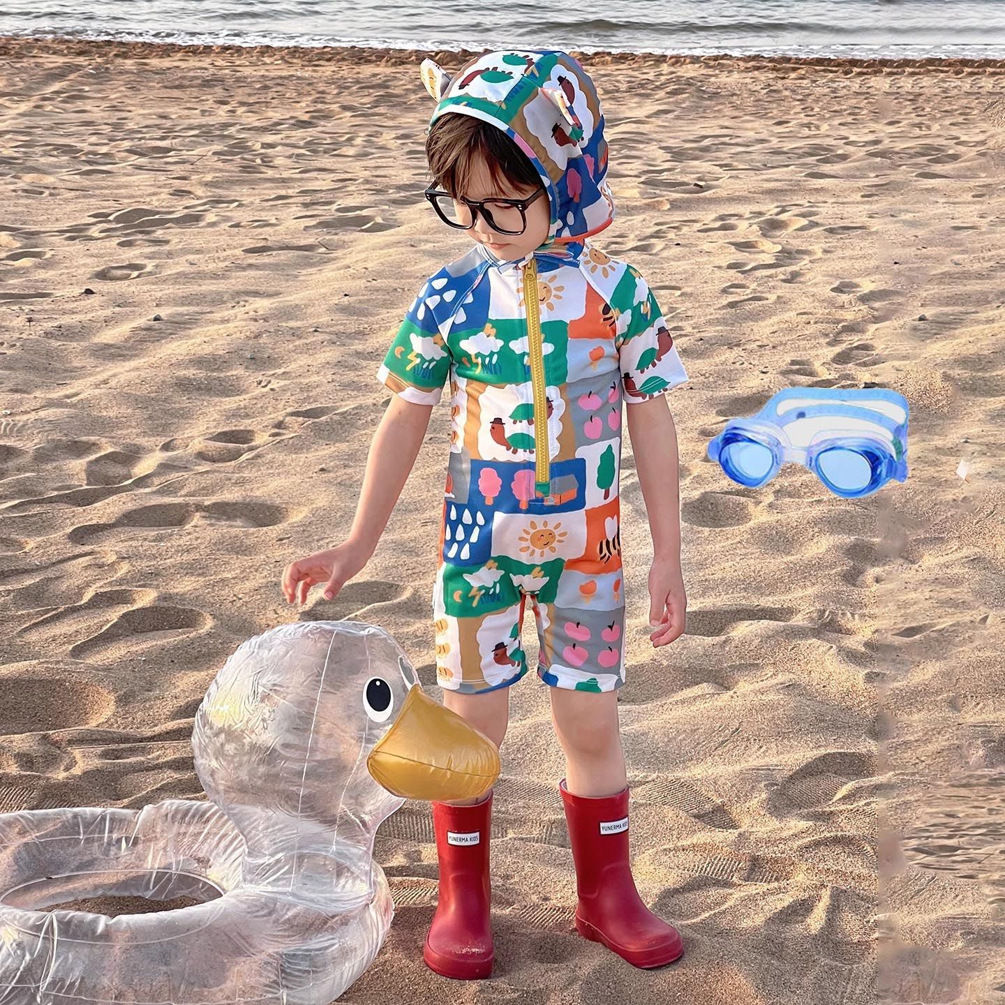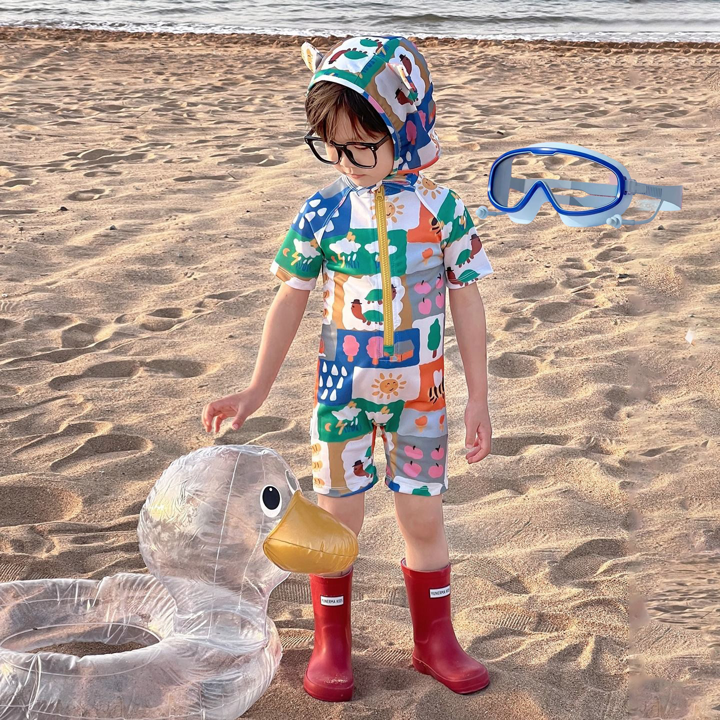 소년 수영복 여름 2025 새로운 아기 소년 원피스 수영복 얇은 어린이 귀여운 만화 해변 수영복